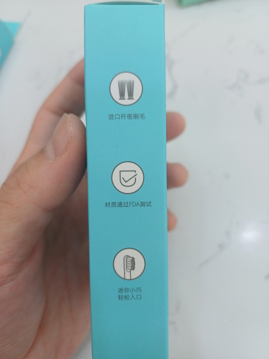 여분으로 구매한 칫솔모인데 수입 미세모를 사용했고, FDA테스트를 통과하였으며, 해드가 작아서 쉽게 양치를 할 수 있다고 적혀 있다.