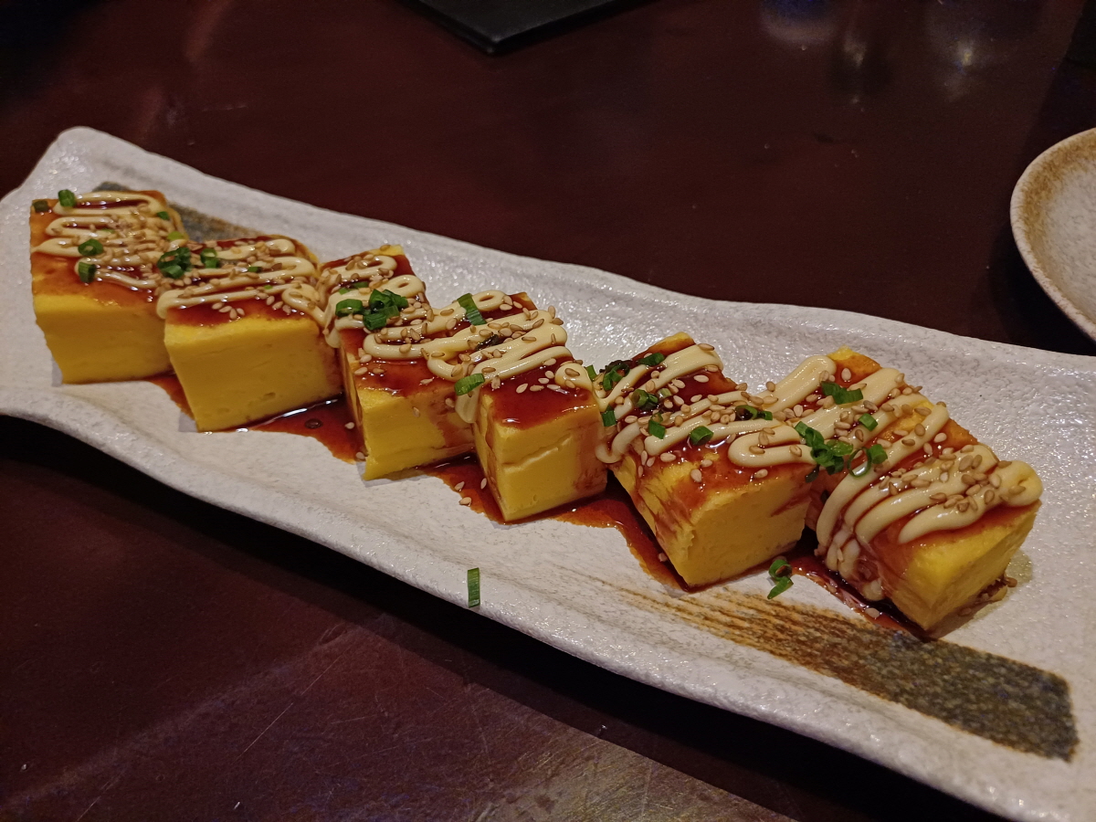 소스와 마요네즈를 뿌린 일본식 달걀찜인데 부드럽고 달달한 맛이었다.