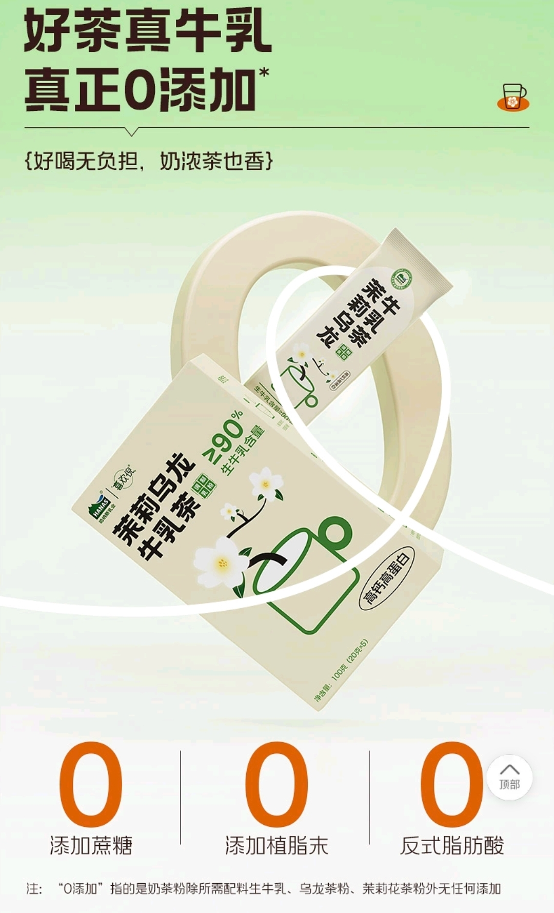 당 무첨가, 비유제픔 크리머 무첨가, 트랜스지방산 무첨가로 생우유, 차분말 등 필수 성분 외에는 첨가물이 없다고 하며, 신장 아러타이 지역의 원유를 사용했다고 한다.
