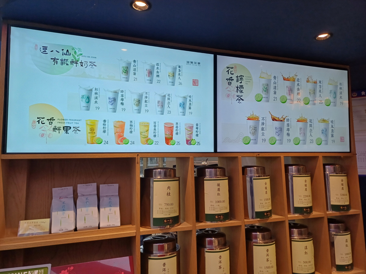 지난 중국에서 가장 매장수가 많은 밀크티 브랜드인 미쉐빙청(蜜雪冰城) 포스팅을 했었는데, 방문했던 미쉐빙청 매장 옆에 중국 차 찻잎과 음료를 판매하는 매장이 있어서 관심을 가지고 살펴본 뒤, 다시 방문을 해봤다.