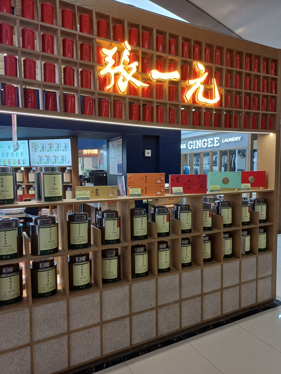 간판을 살펴보니 장일원(张一元)이라는 이름이 매장이었으며, 중국 상무부가 중국의 오래된 품질이 좋은 상품을 생산하는 기업에 부여하는 '중국노자호(中国老字号)' 마크도 볼 수 있었다.