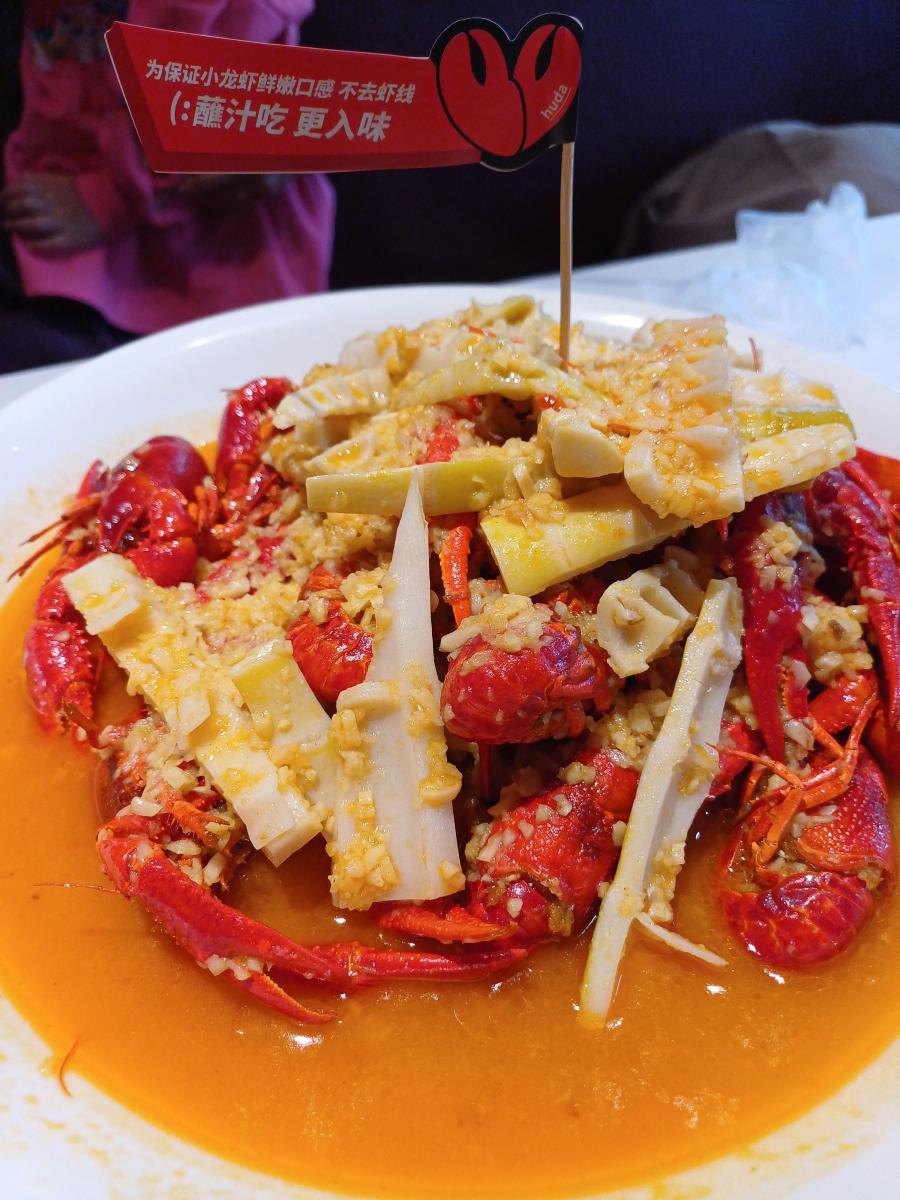 구이제에서 가장 유명한 음식은 바로 민물가재에 마라 양념을 버무린 '마라롱샤(麻辣龙虾/málàlóngxiā)'다. 그리고 마라롱샤를 판매하는 식당 중 가장 유명한 식당은 후따(胡大/húdà)라는 곳이다.