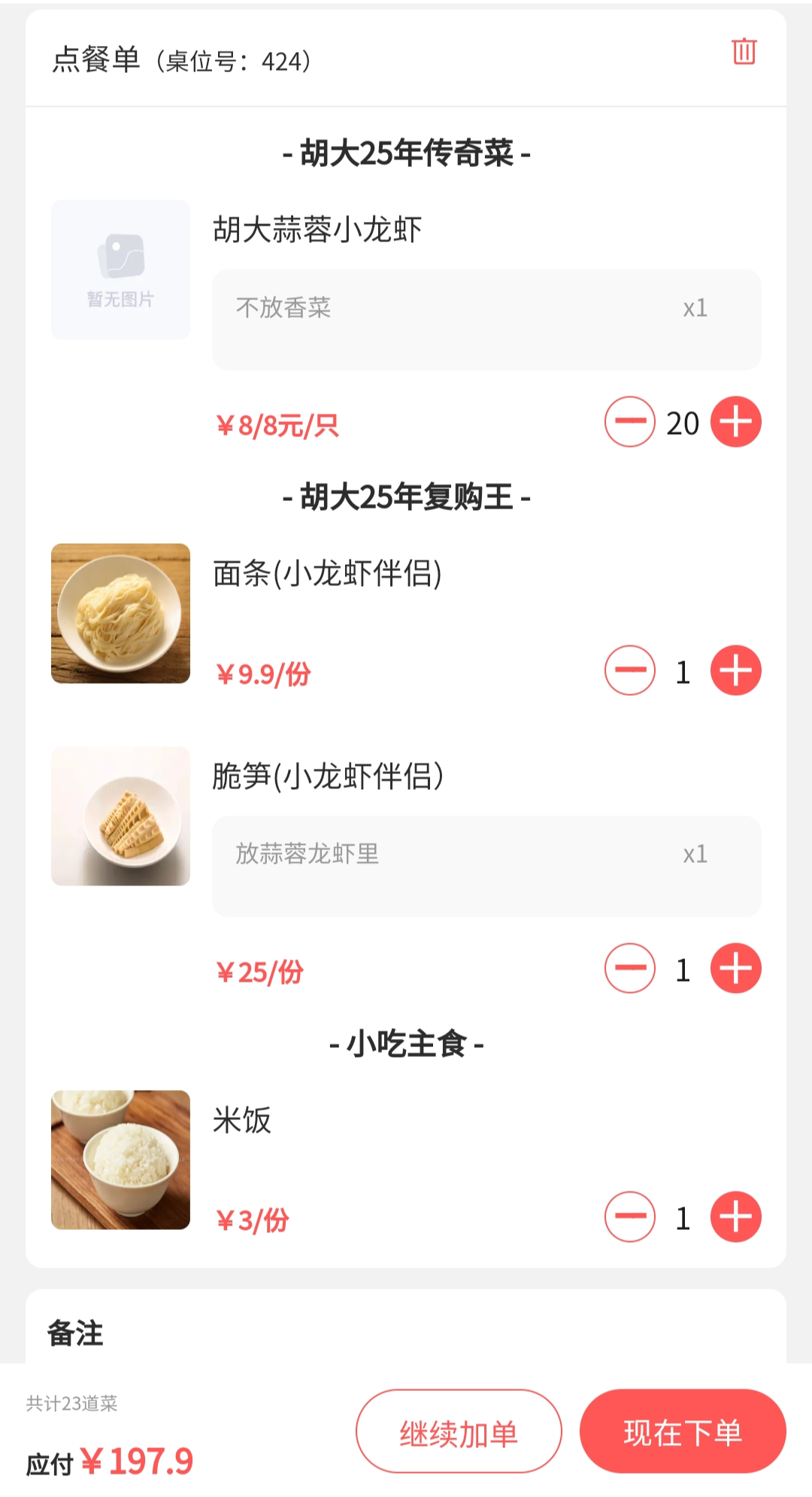 롱샤는 20마리를 주문했고, 면과 죽순, 밥 한 그릇을 추가해서 200위안 정도 지불했다.