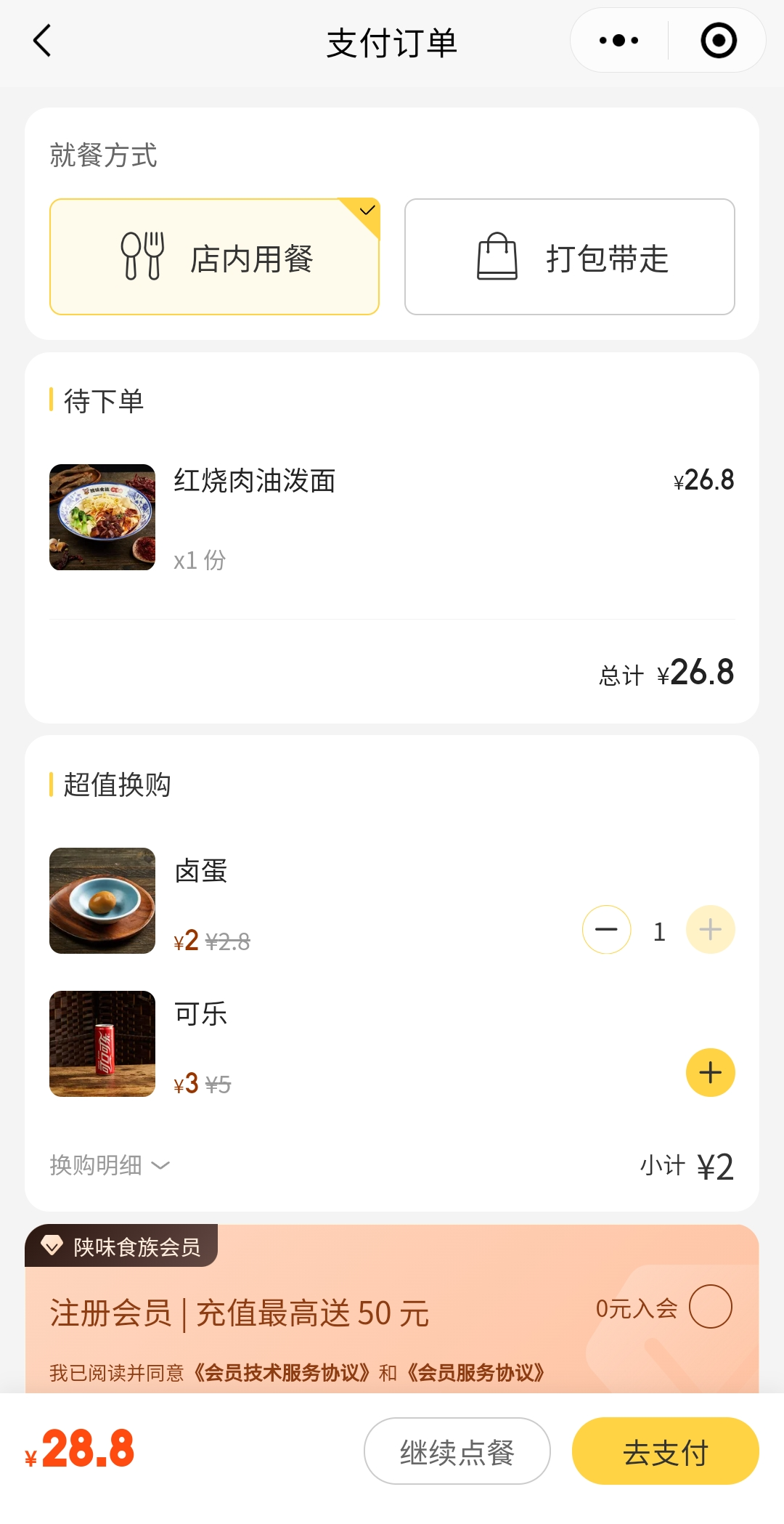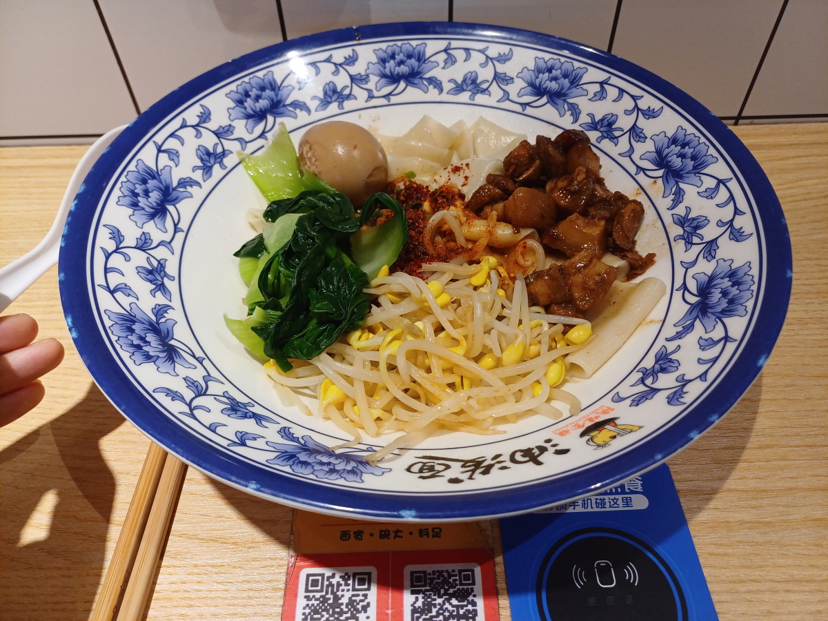 소금에 절인 달걀인 로단(卤蛋/lǔdàn)을 2위안에 추가가 가능하길래 1개 추가를 해서 총 28.8위안을 지불했다.