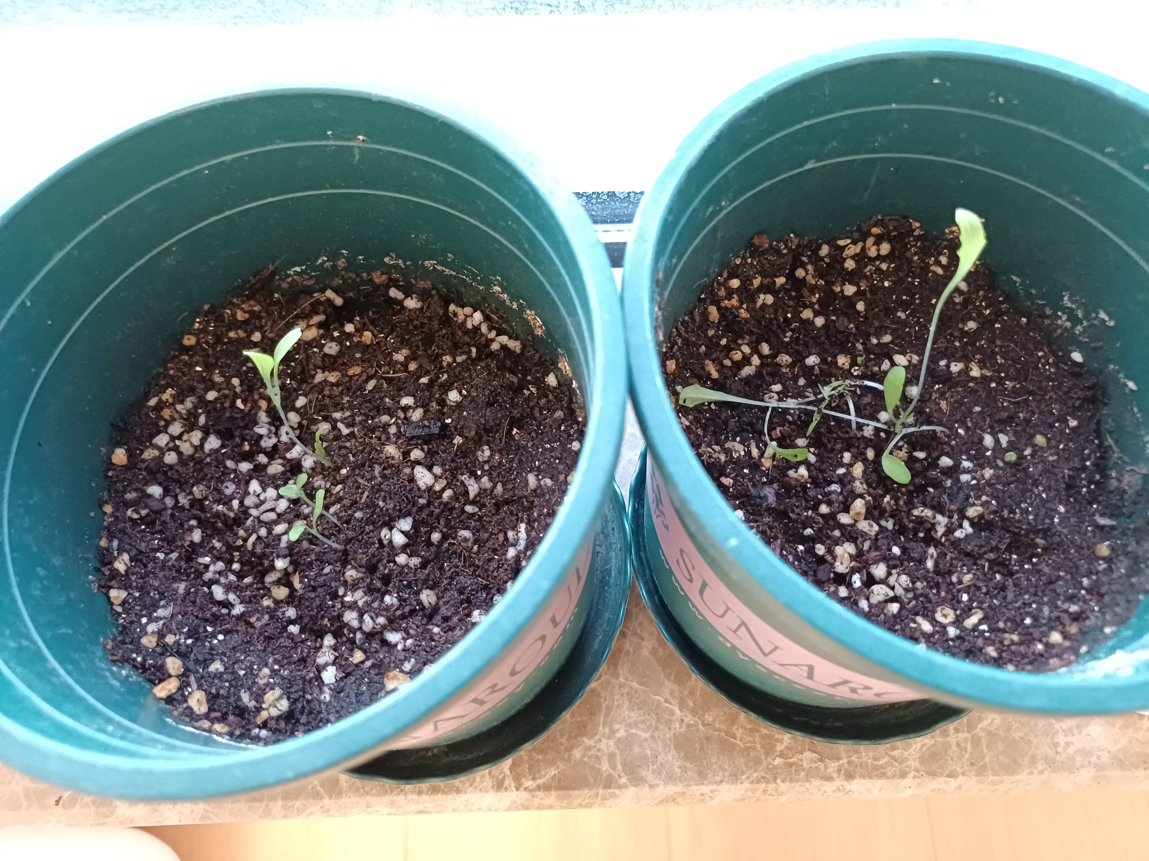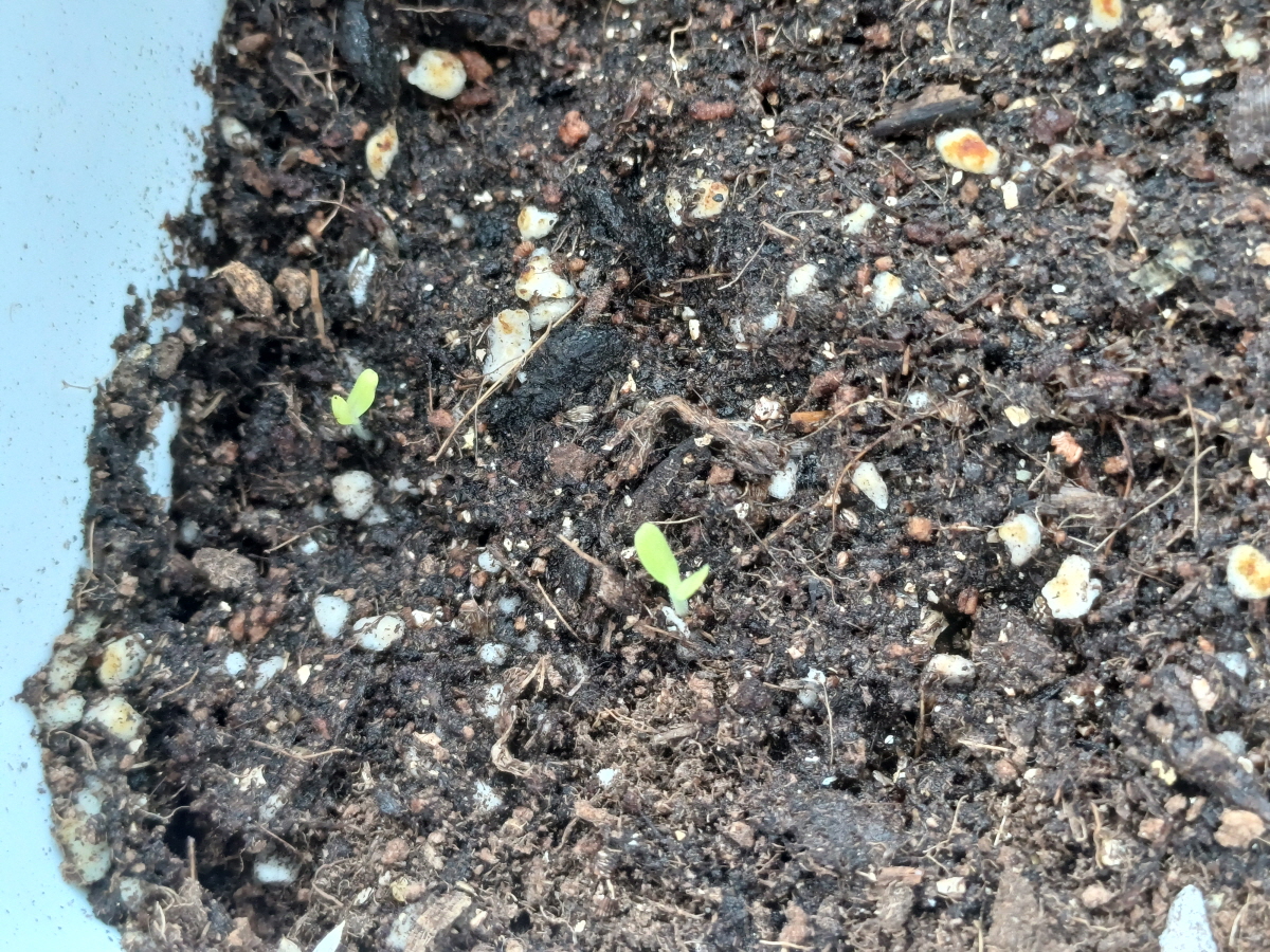 파종 후 약 12일 경과했을 때의 사진이다. 새싹들이 줄지어 힘차게 올라오고 있다. 이쯤 되니까 싹을 틔운 씨앗들과 그렇지 못한 씨앗들이 확실히 구분이 되었다. 씨는 엄청 많이 뿌렸는데 올라오는 새싹은 소수다. 식물의 세상도 강한 자만 살아남나 보다.