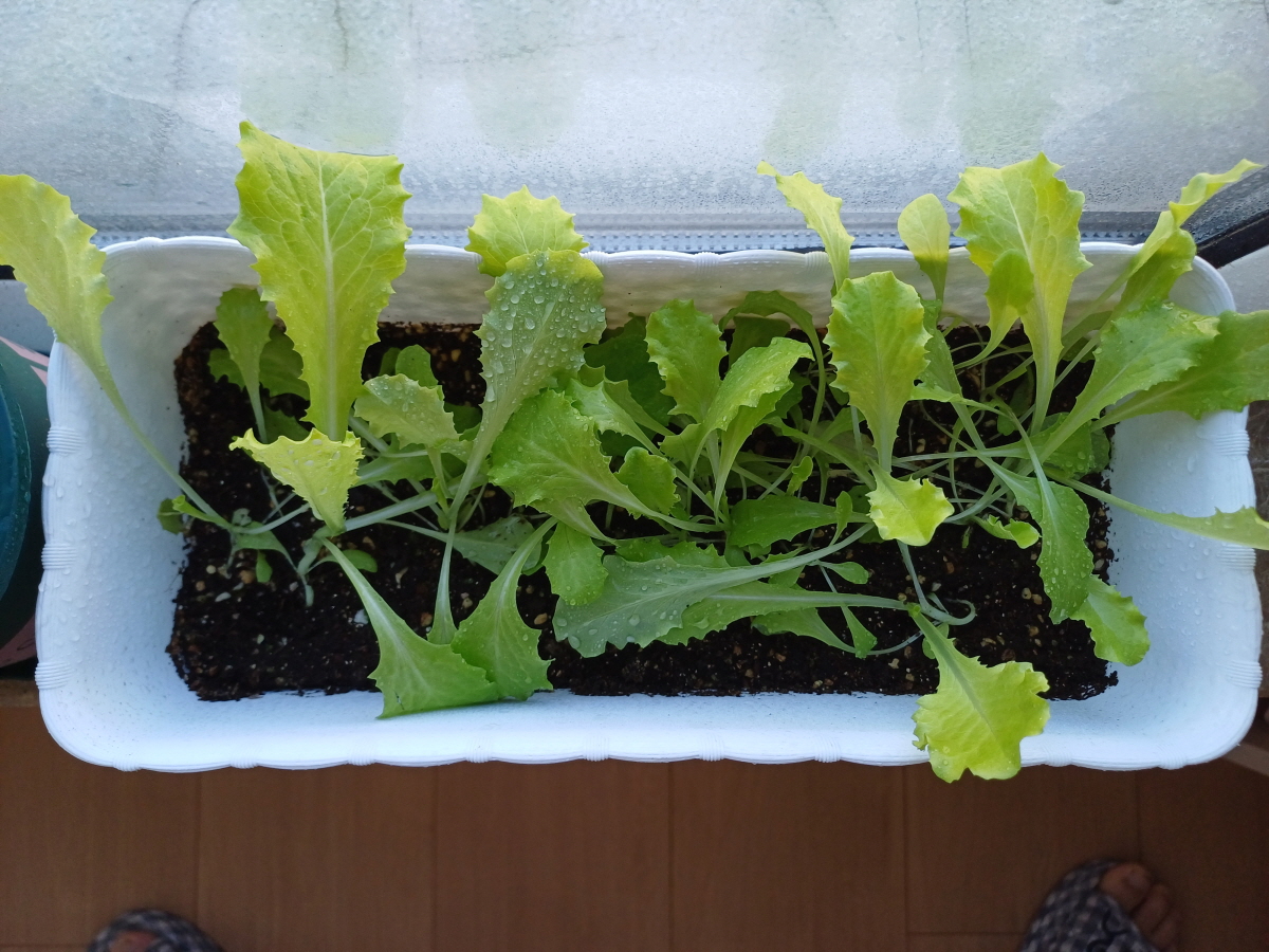 파종 후 약 43일, 12월이 된 기념으로 첫 수확을 하기로 했다. 내버려 두면 더 자랄 것 같긴 했는데 상추 잎들이 자꾸 화분 밖으로 삐져나와서 솎아주는 차원에서 길게 자란 상추 위주로 수확을 했다.