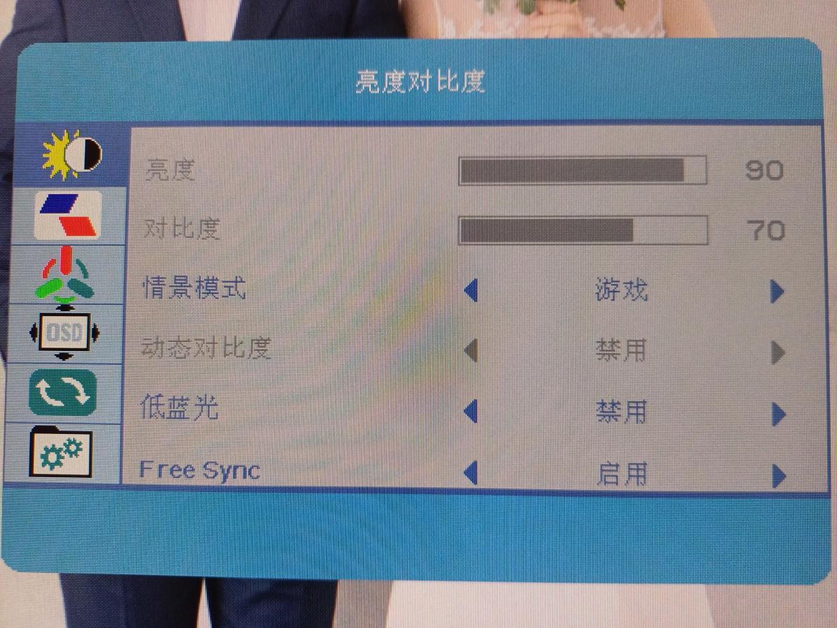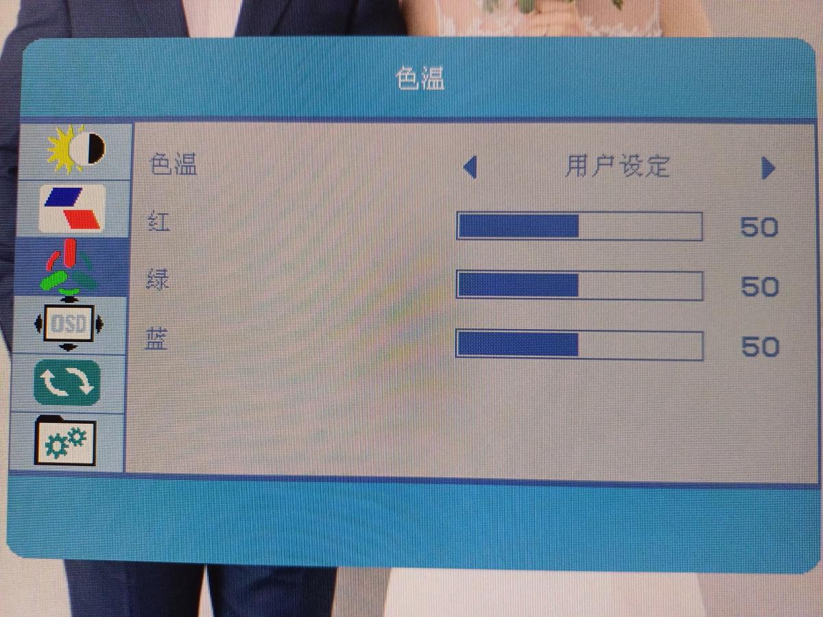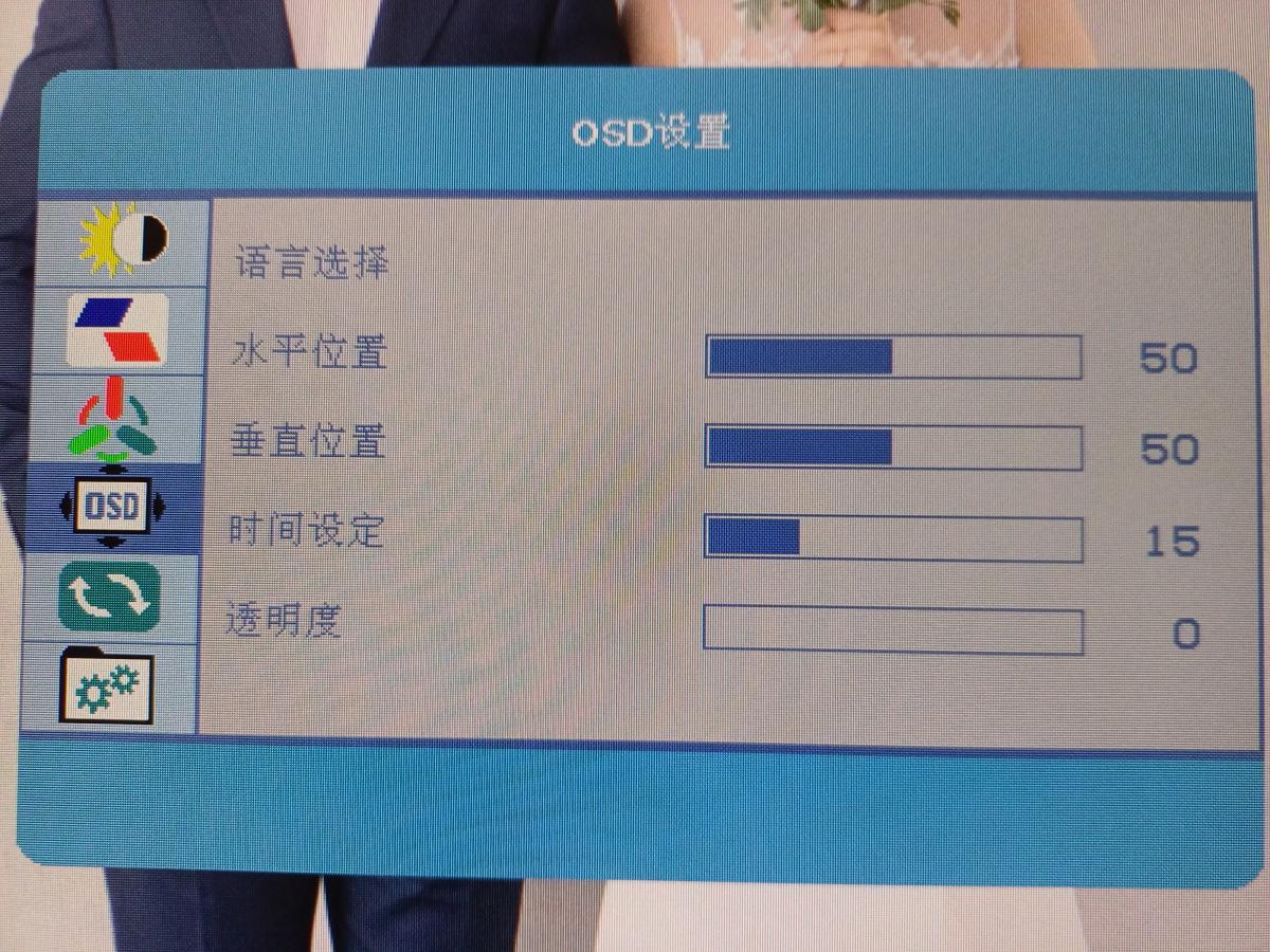 밝기, 대비도, 색상 등 다양한 옵션 조정이 가능했지만 아쉽게도 언어 변경 불가했다. 오로지 중국어로만 이용이 가능했다.
