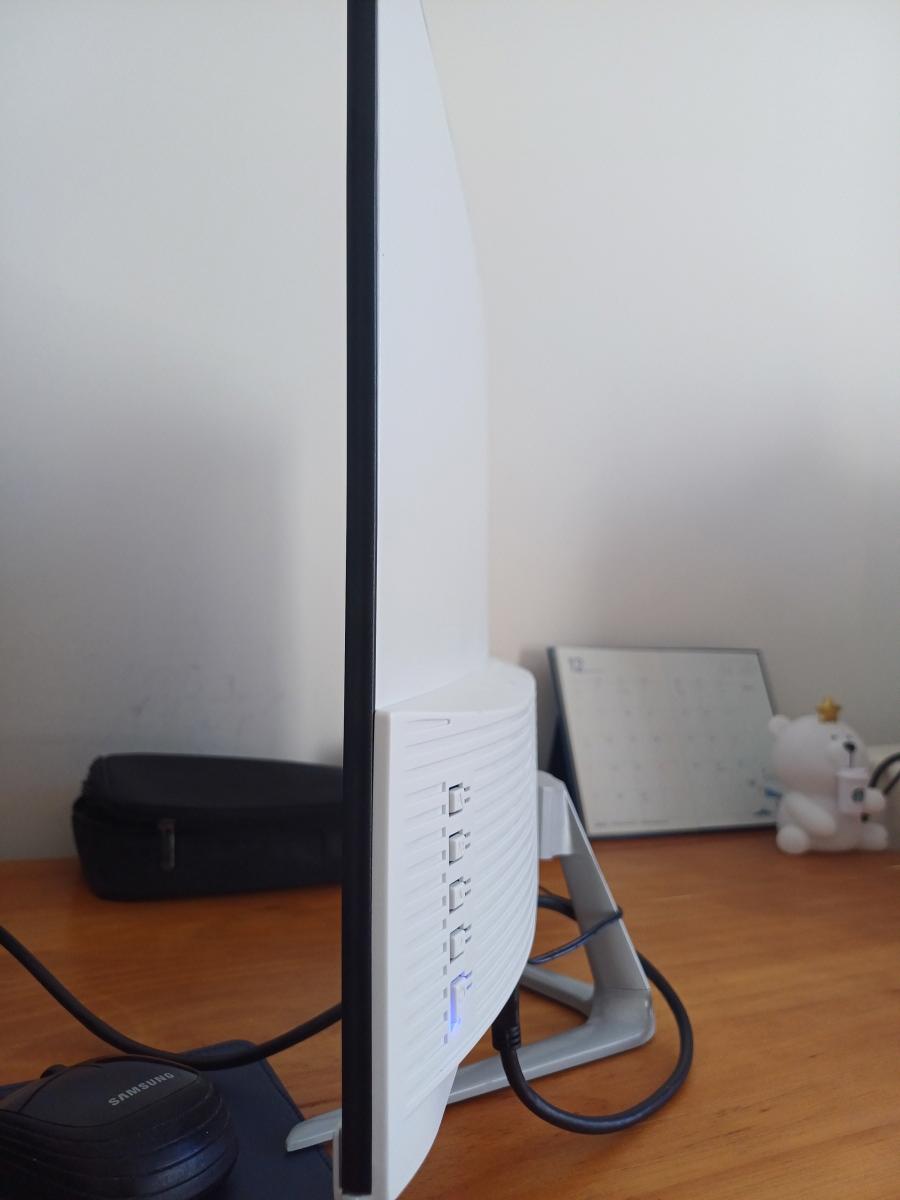 저렴한 제품이다 보니 후면 하단부가 볼록 튀어나와 있었으며, 모니터 정면부의 로고 도장 인쇄가 참 부실했다. 역시 저렴한 제품이라 마감이 아쉽다.