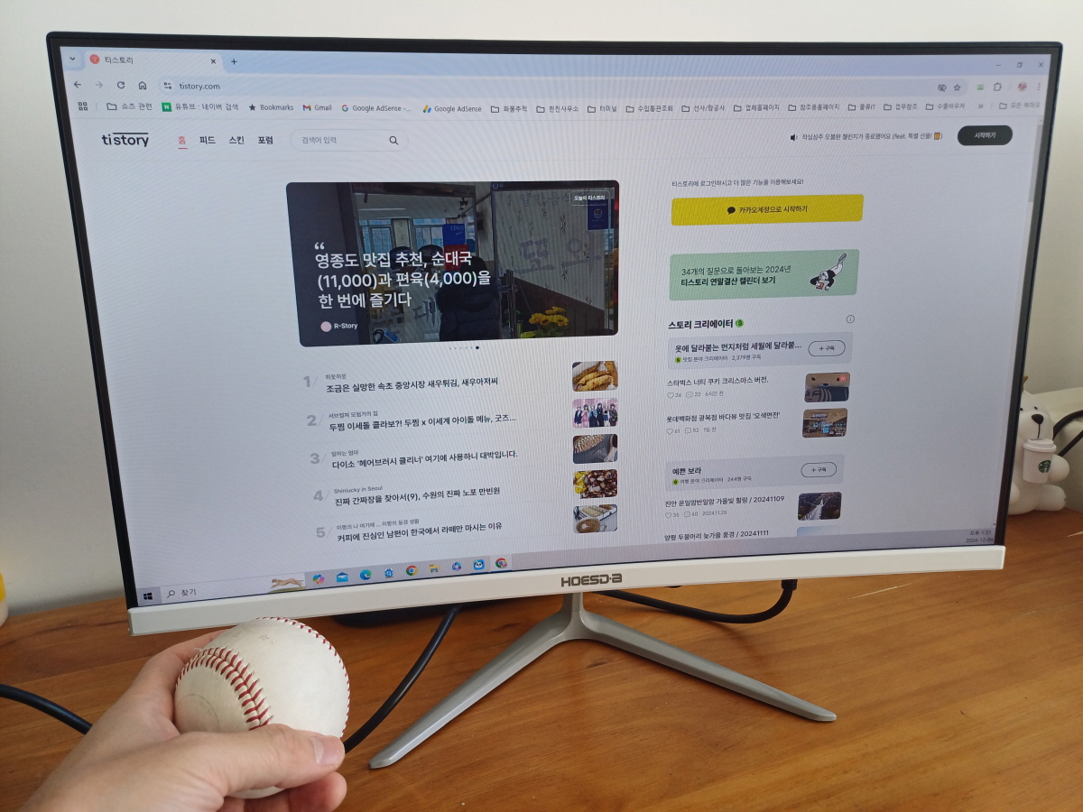 다중 모니터를 이용해서 편한 자세로 블로그를 작성하니 몸도 편하고 작성 효율도 올라가는 느낌이 들었다. 역시 시기적절한 설비 투자는 옳다!,