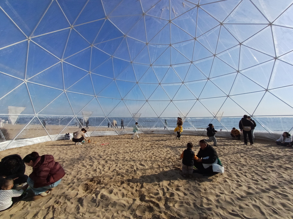 해안가를 따라서 거대한 돔 구조물이 몇 개 있어서 들어가 보니 내부가 온실처럼 따뜻했다. 이 안에서 여러 아이들이 모래놀이를 하고 있었다. 겨울 바닷바람을 피해 몸을 녹이기에 딱 좋았다.