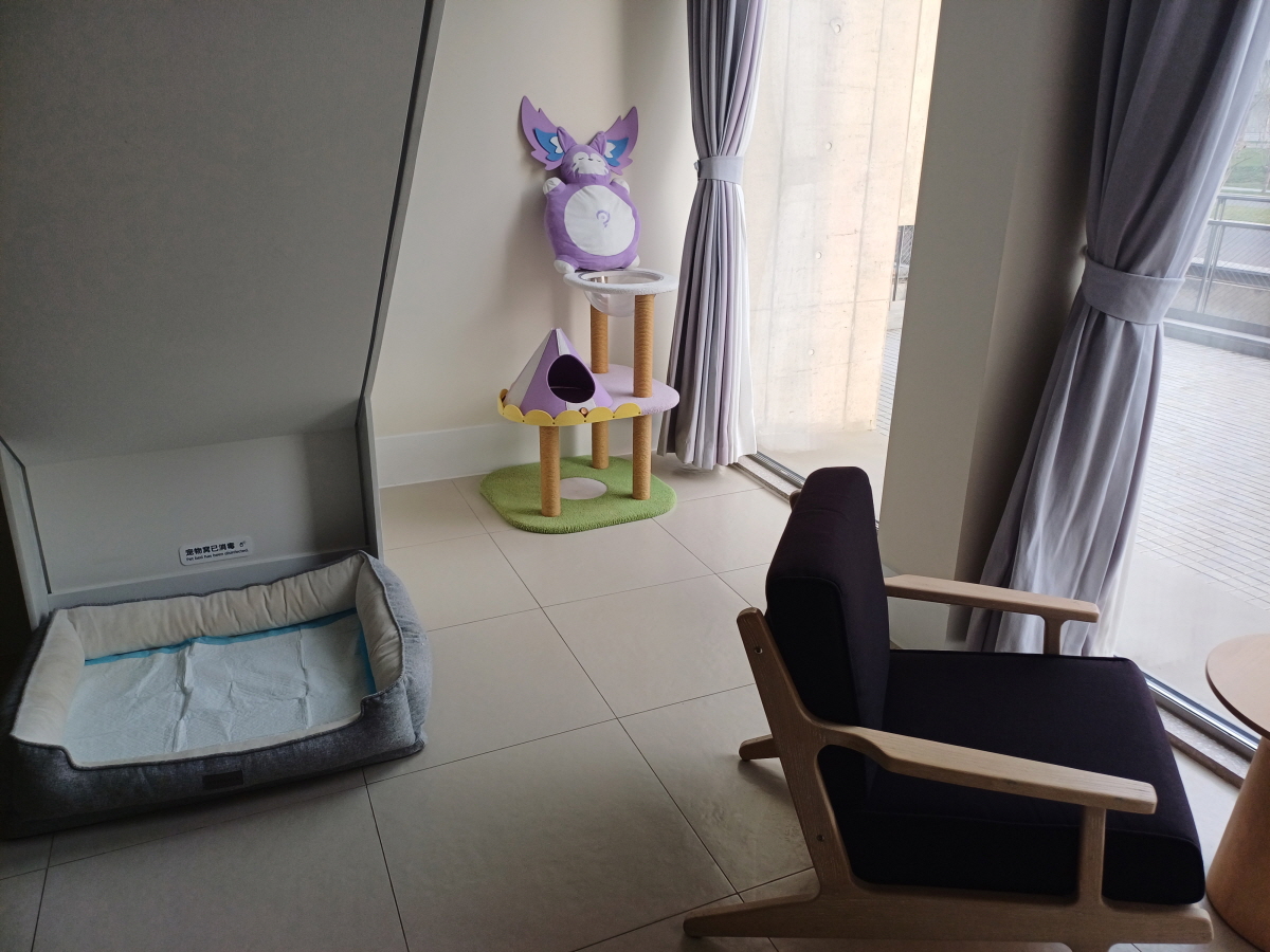 예약한 호텔은 리조트 안에 위치한 애견 동반 숙박가능한 견사호텔이라는 곳으로, 이곳에 숙박할 계획은 없었는데 숙소 예약 당시 당일 예약이 가능한 곳이 이곳뿐이라서 어쩔 수 없이 이곳에 숙박하게 되었다. (개털이 조금 날리므로 알레르기가 있는 사람은 이용을 피하는 게 좋을 듯)