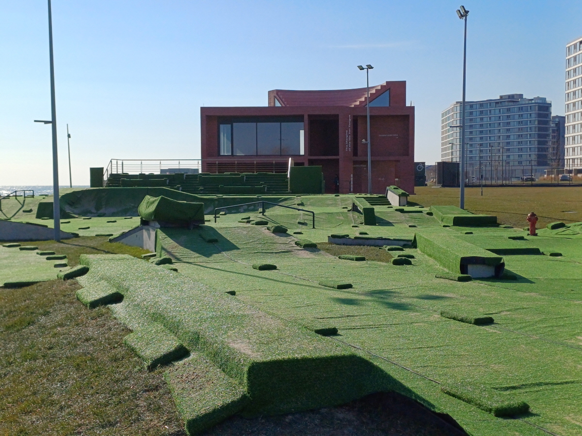 인라인이나 스케이트 보드를 타는 곳으로 보이는데, 겨울이라 이용하는 사람이 없었다.