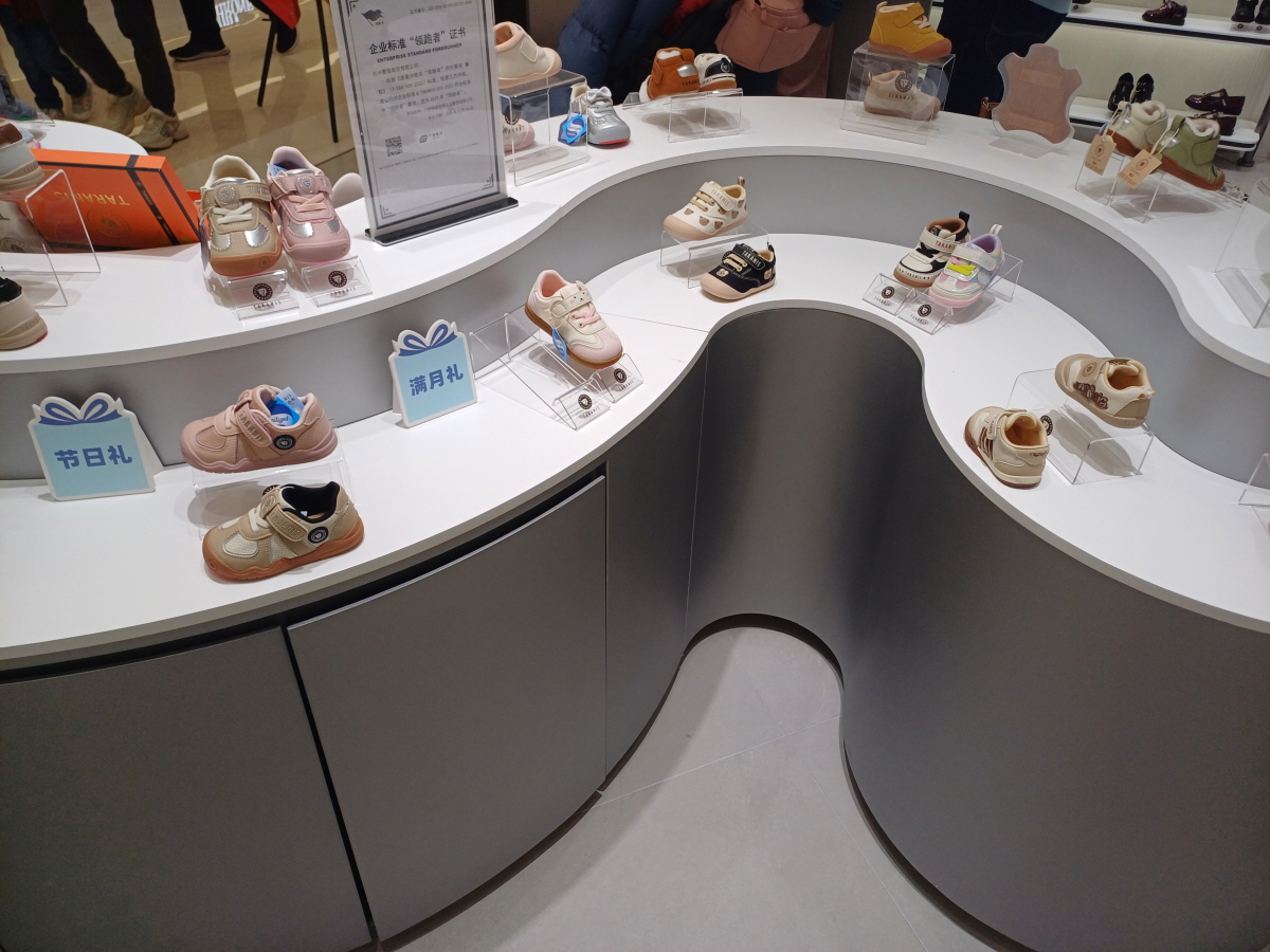 가죽 재질의 다양한 구두도 판매하고 있고, 연령별로 다양한 디자인의 신발을 판매하고 있었다. 가격대도 대부분의 제품이 3~500위안대 수준으로 예상보다 비싸지는 않았다.