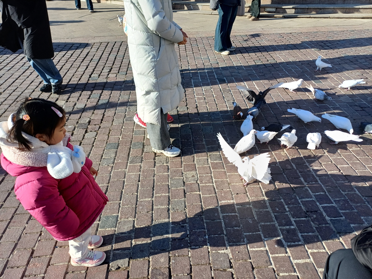 비둘기가 어마어마하게 많다. 한쪽에서는 먹이를 팔고 있고, 먹이를 주면서 사진 찍는 사람들로 바글바글했다. 아이는 마냥 신나서 한참을 놀았다.