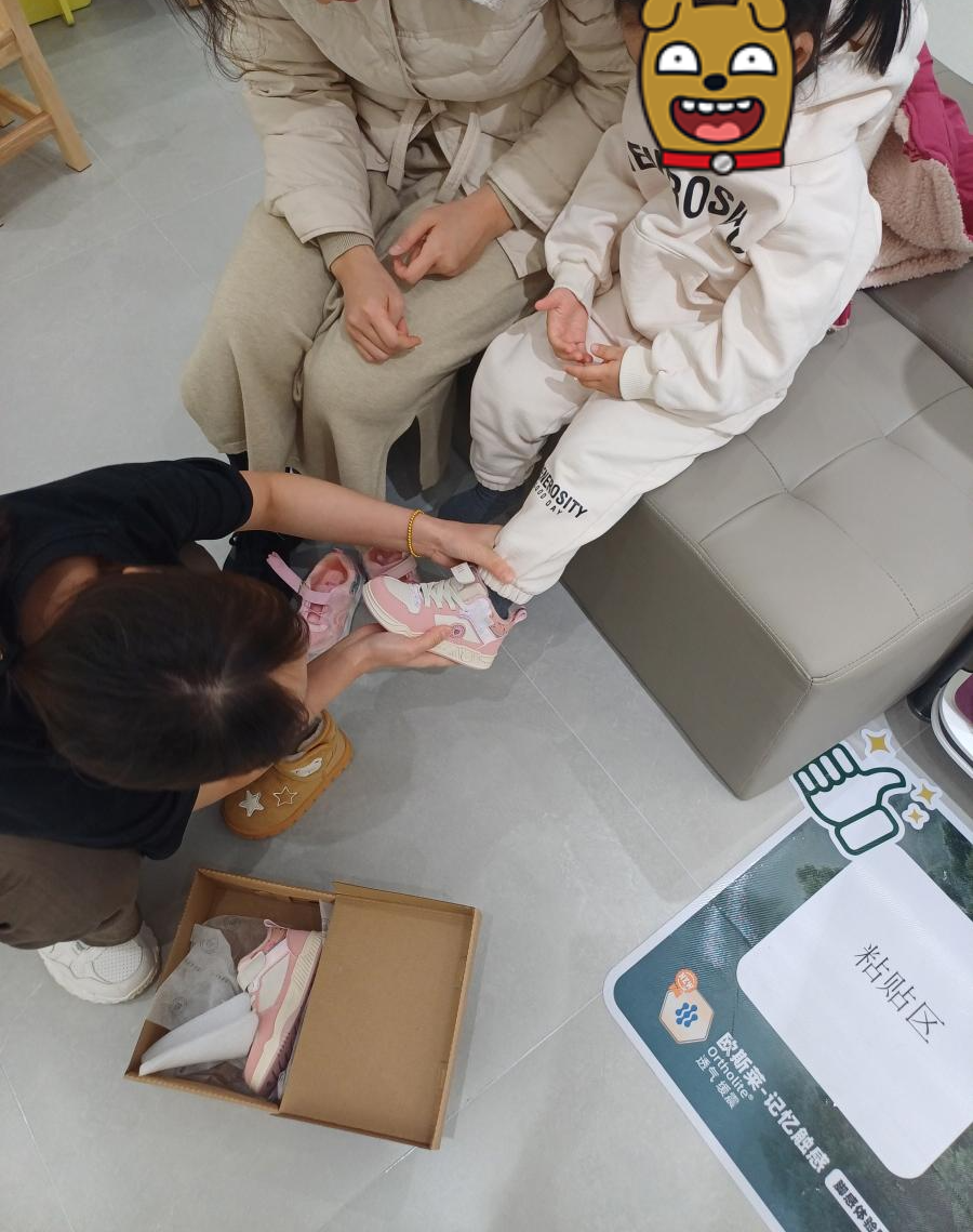 매장 직원이 직접 아이의 발을 측정한 후 신발을 신겨주고 사이즈가 적절한지 체크를 해줬다. 아이는 나이키 덩크하이와 비슷한 디자인의 분홍색 신발을 골랐다. 역시 분홍색 러버다.