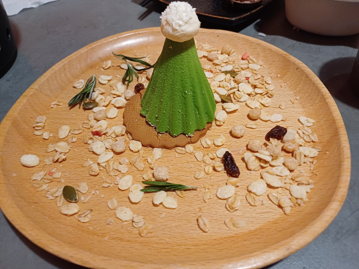 마지막으로 주문한 트리 모양의 디저트인데, 말차 크림 베이스에 안에는 유자 베이스의 잼 같은 것이 들어 있었다. 아이가 좋아하긴 했지만 솔직히 가성비가 너무 떨어지는 메뉴였다.