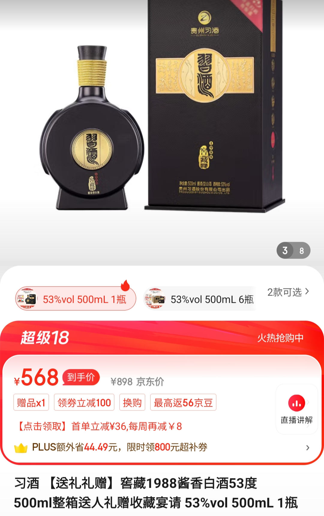 인터넷 쇼핑몰에서 백주 판매 카테고리에서 인기순으로 정렬을 하니 습주(习酒)라는 술이 상위에 많이 랭크가 되어있다. 과거 중국 평주회(评酒会)에서 수상 이력이 있는 명성이 있던 술도 아닌데 최근 들어 중국에서 잘 팔리는 술인 것 같다.
