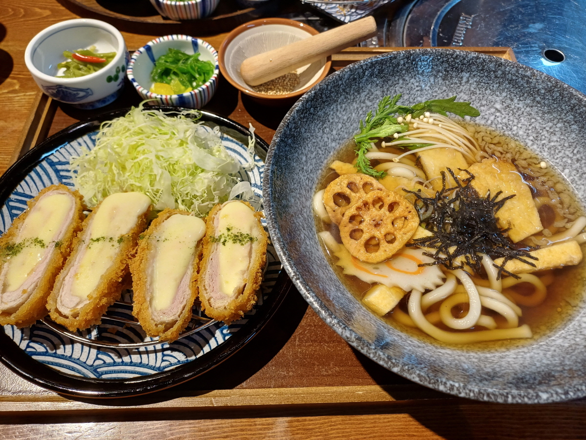 치즈돈까스 + 우동 조합으로 세트도 함께 주문을 했는데, 치즈돈까스도 어느 하나 흠잡을 만한 곳이 없을 정도로 훌륭했다. 치즈의 맛과 익힘 정도, 튀김옷의 바삭함 정도, 고기의 식감 등 순식간에 4 조각을 흡입했다. 세트로 함께 나온 우동은 특별하지는 않았지만 기본에 정말 충실했다.