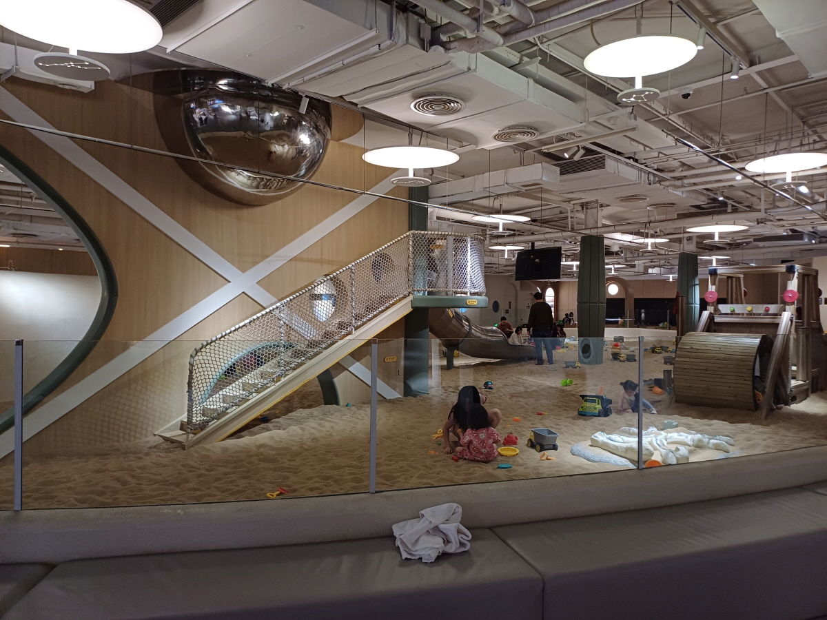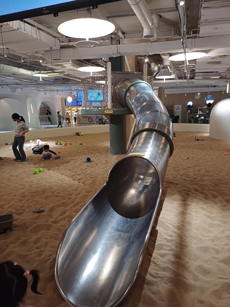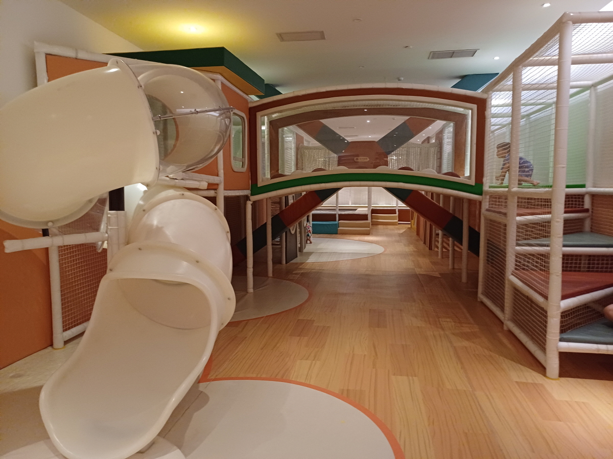 더 안쪽으로 들어가면 아이들 놀이터가 나오는데 실내 미끄럼틀도 있고 텀블링도 있다.