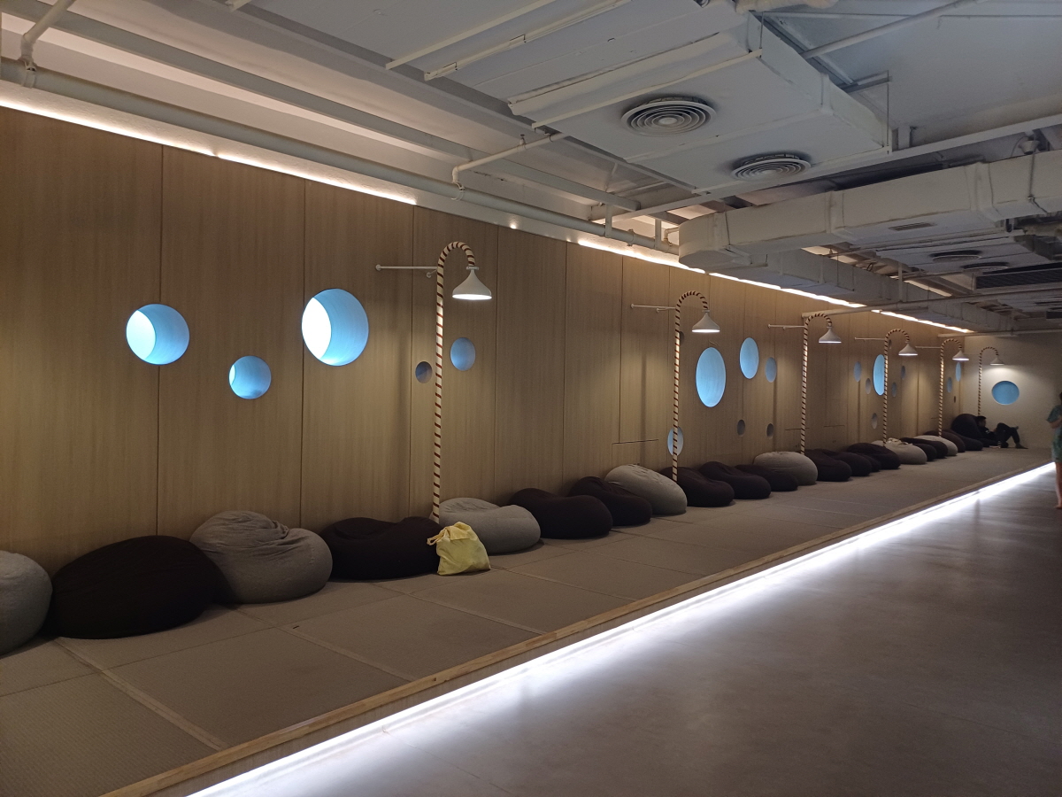 오픈되어 있는 공간에는 자유롭게 누워서 휴식이 가능했고, 굴 같이 생긴 공간은 따로 추가 비용을 지불하고 이용하는 방식이었다.