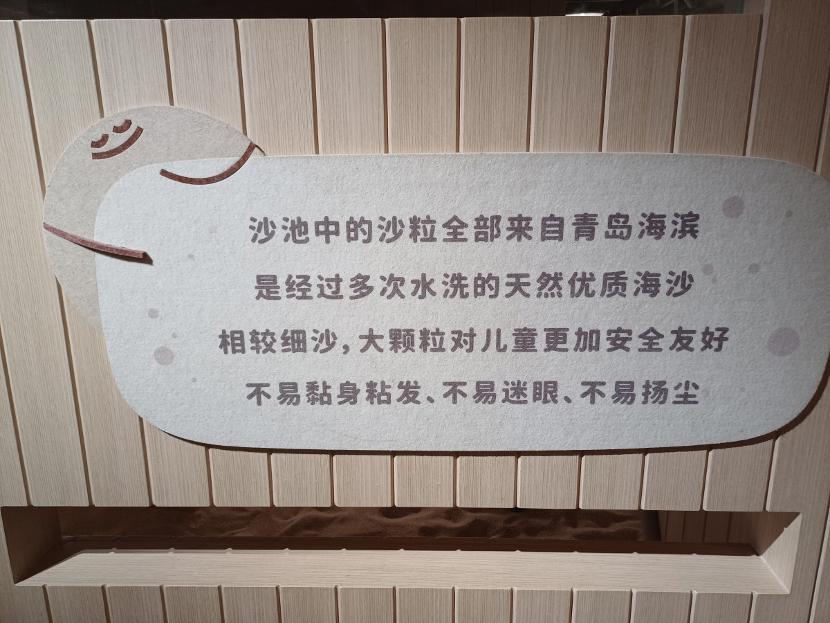 놀이터에 사용된 모래가 전무 중국 칭다오(青岛)의 해변에서 취하였으며, 여러 차례의 세척 과정을 통해서 큰 입자만 남아몸에 잘 붙지 않기 때문에 아이들이 놀기 좋다고 한다.