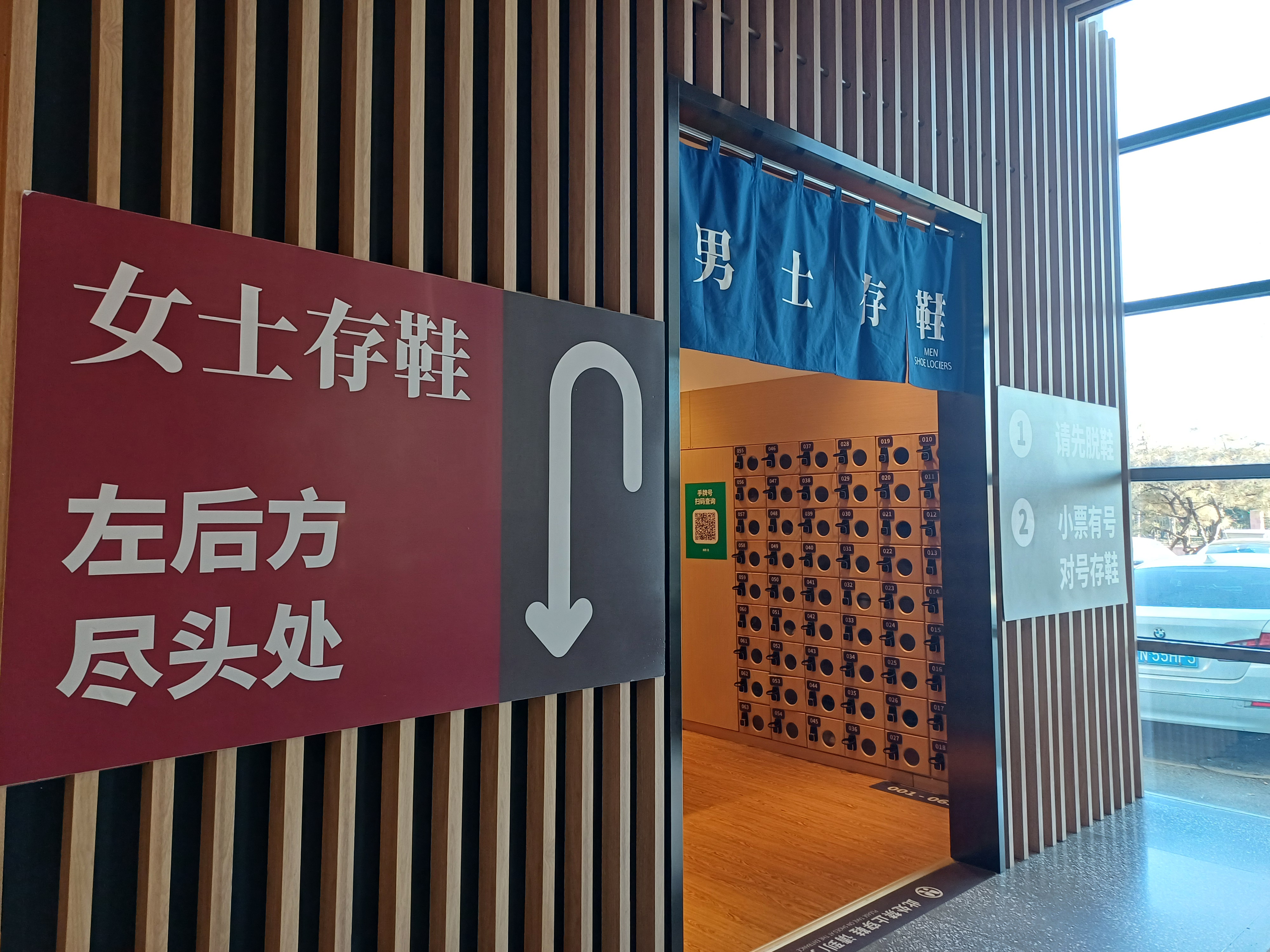 입장 후 키오스크 화면에 떠 있는 QR코드를 스캔하여 번호 받기를 클릭하면 입장 시간과 신발 락커 번호가 인쇄되어 있는 종이를 받을 수 있고, 락커 번호를 찾아 신발을 넣고 락커 문에 달려 있는 번호 팔지를 차고 입장하면 된다.