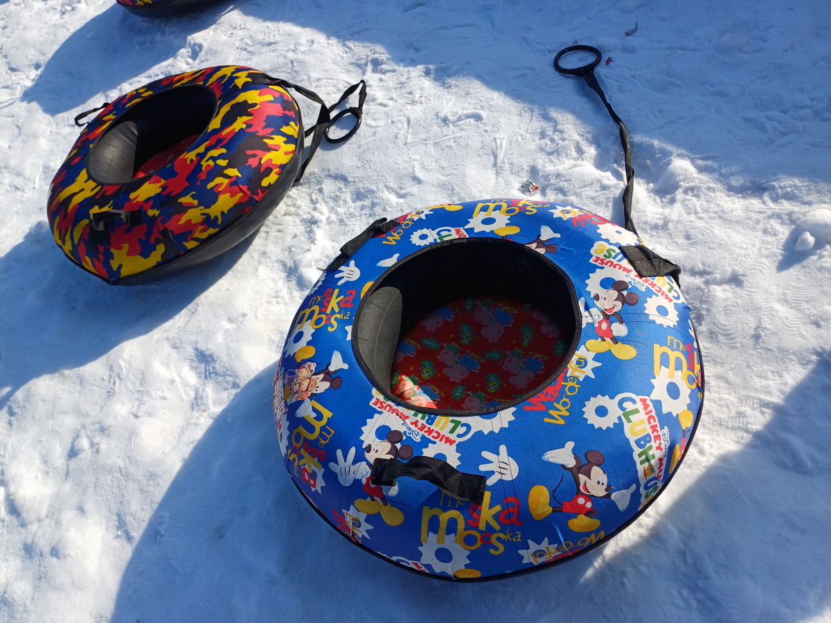 엉덩이가 쏙 들어가는 손잡이가 달린 튜브 같은 썰매를 끌고 올라가면 위에서 안전요원이 썰매를 밀어줬다.