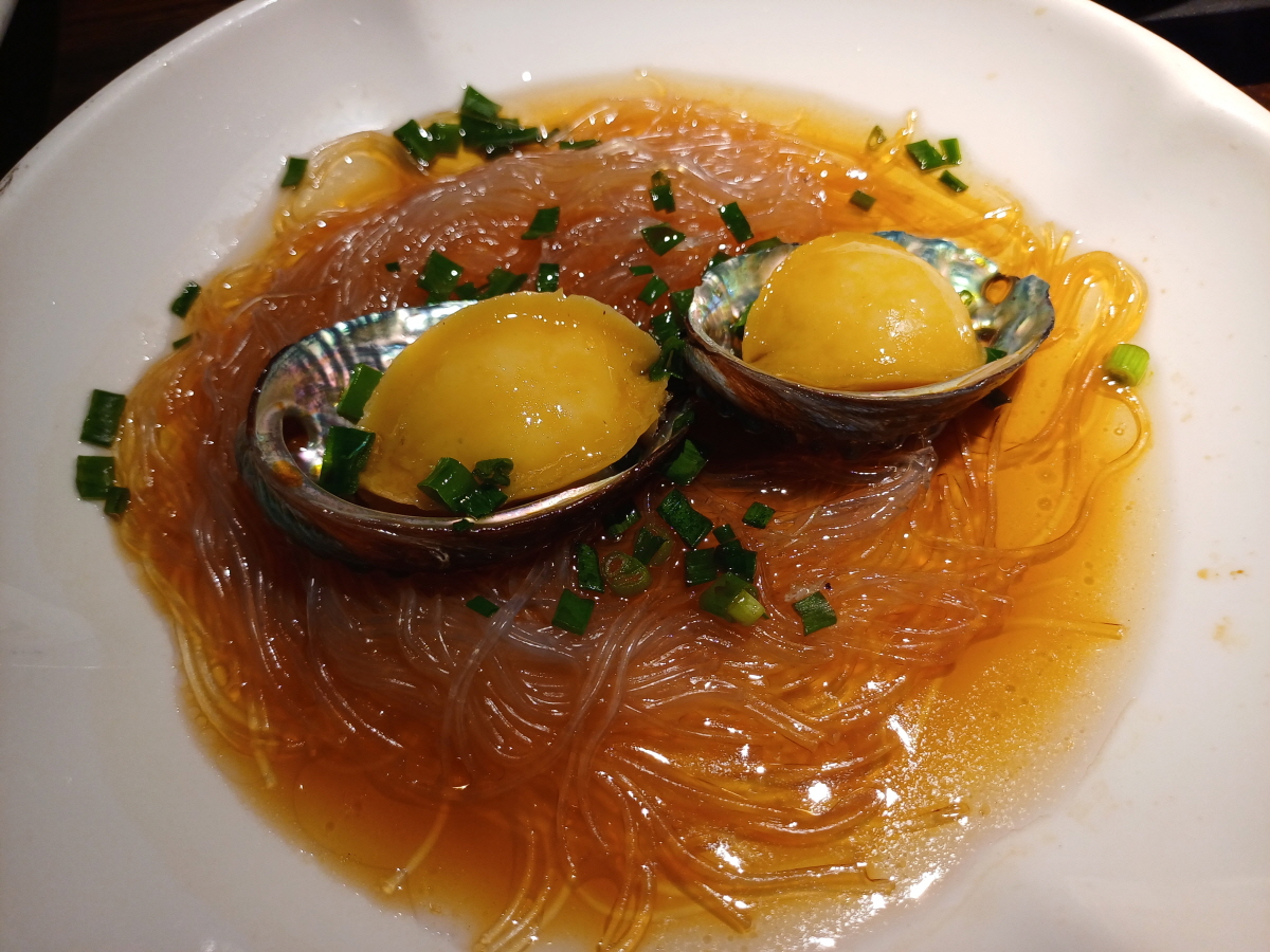파기름 소스 당면에 전복을 올린 요리인데, 전복은 정말 부드러웠고 당면도 쫄깃하니 맛있었다.