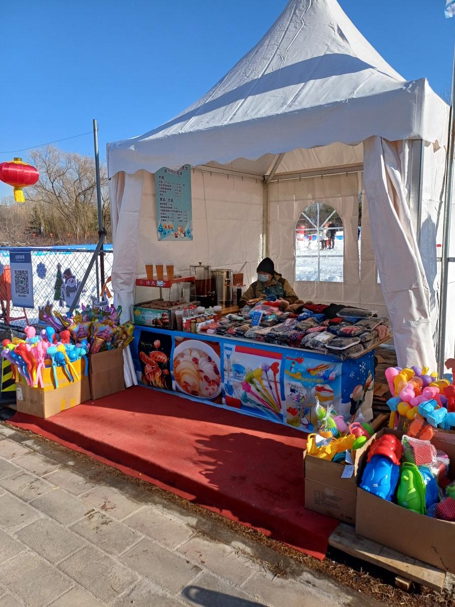 눈썰매장은 빙설 카니발이라는 이름으로 운영하고 있었으며, 입구에는 눈밭에서 가지고 놀 수 있는 다양한 장난감을 판매하고 있었다.