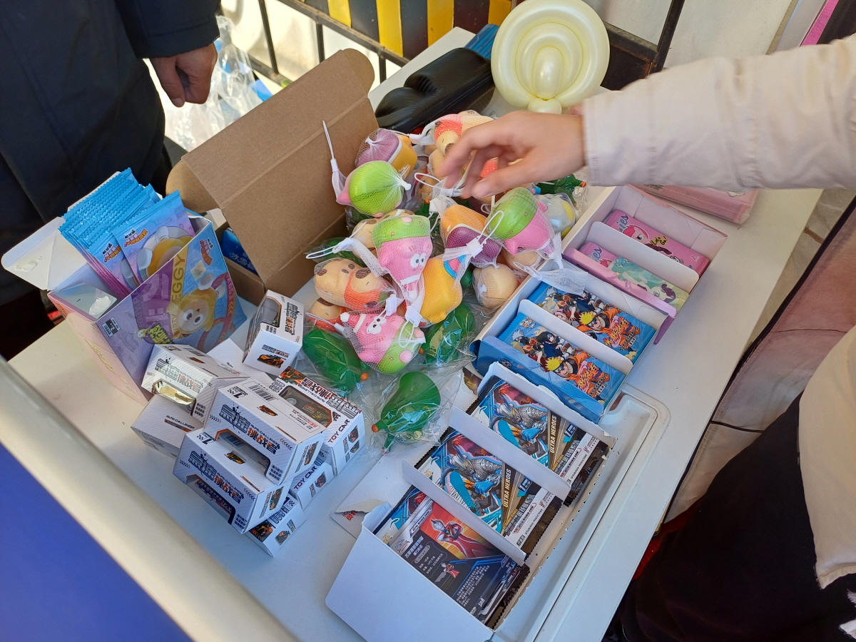 티켓마나 한 번 추첨이 가능했는데, 3등 두 개, 1등 두 개를 뽑았다. 3등 선물은 작은 스펀지 인형이었고 1등 선물은 놀이기구 1회 이용가능 티켓이었다.