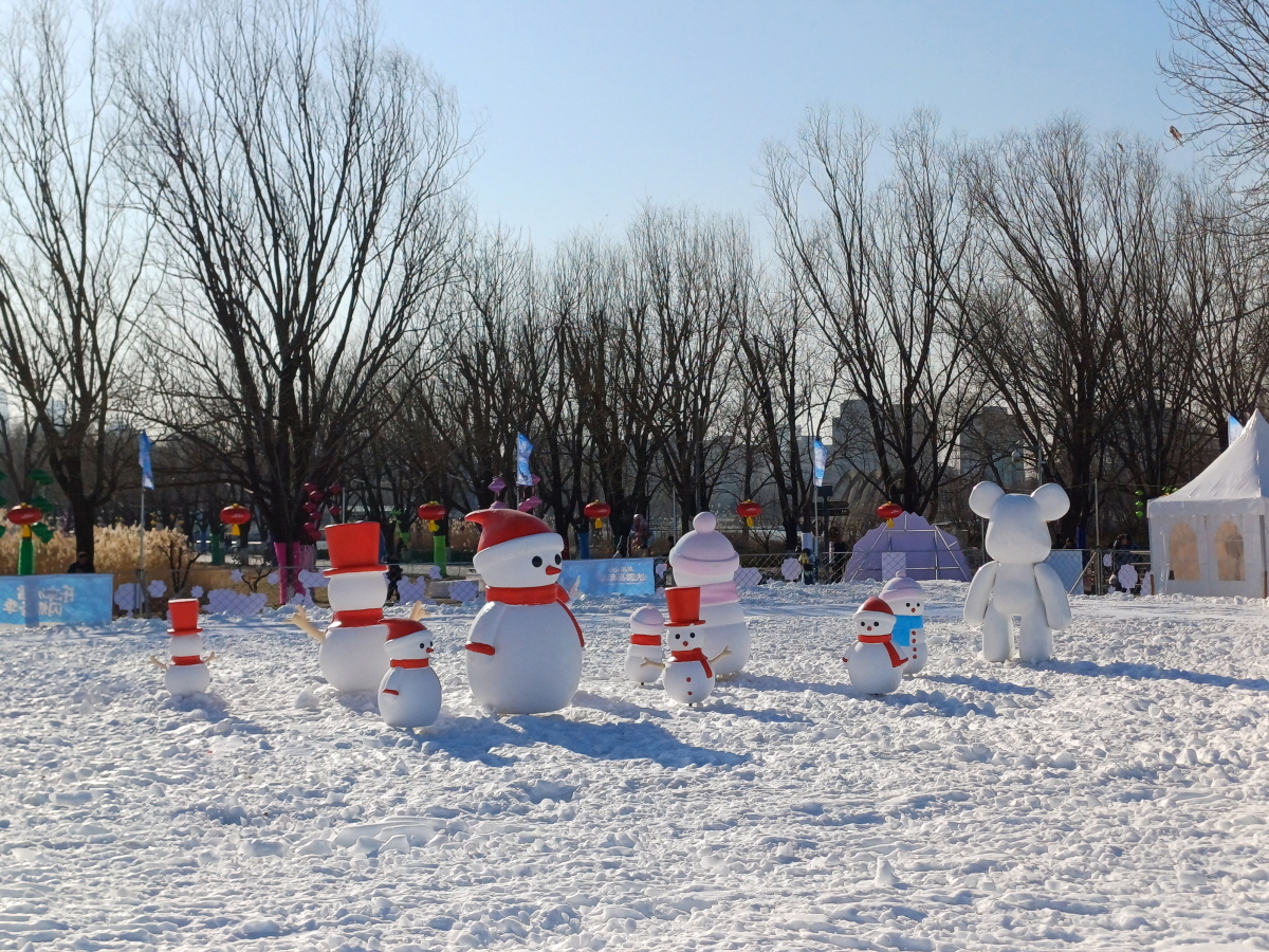 공원 한쪽에 인공눈을 뿌려서 이런 놀이터를 만들 생각을 하다니 참 대단하게만 느껴졌다.