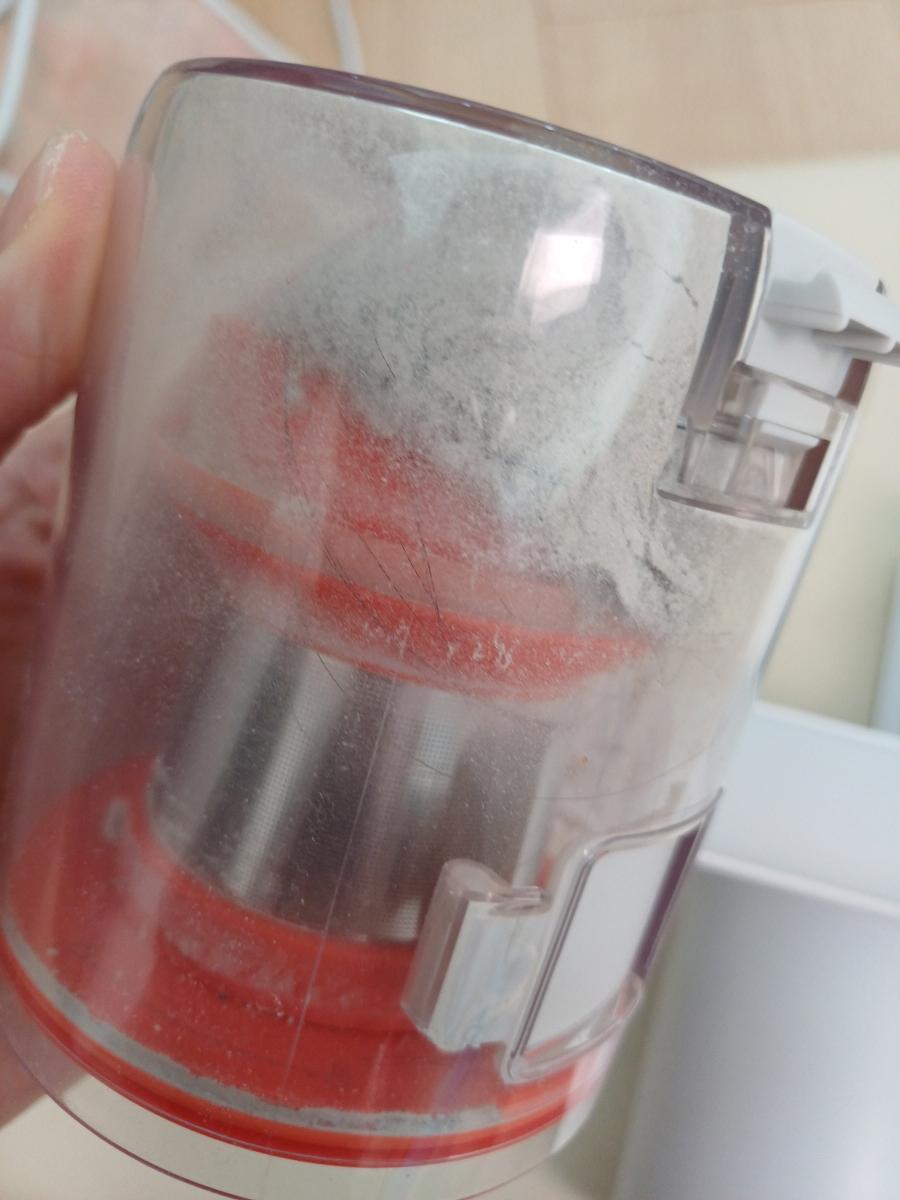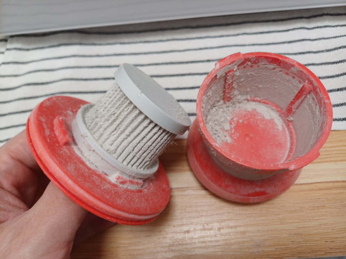 먼지통을 다시 열어서 분해해 보니 필터 안에도 매우 고운 먼지들이 가득했다. 이 먼지 안에 진드기도 가득할 거라 생각하니 솔직히 소름이 돋았으며, 그동안 이 먼지와 함께 잠을 잤다고 생각하니 왜 진작 침구 청소기를 사용하지 않았을까 후회도 들었다.