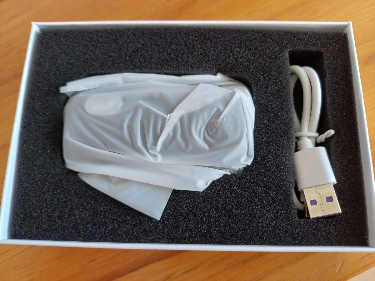 제품은 작고 하얀 박스에 담겨 있었으며, 구성품은 보조배터리 본체와 USB충전 케이블이 포함되어 있다.