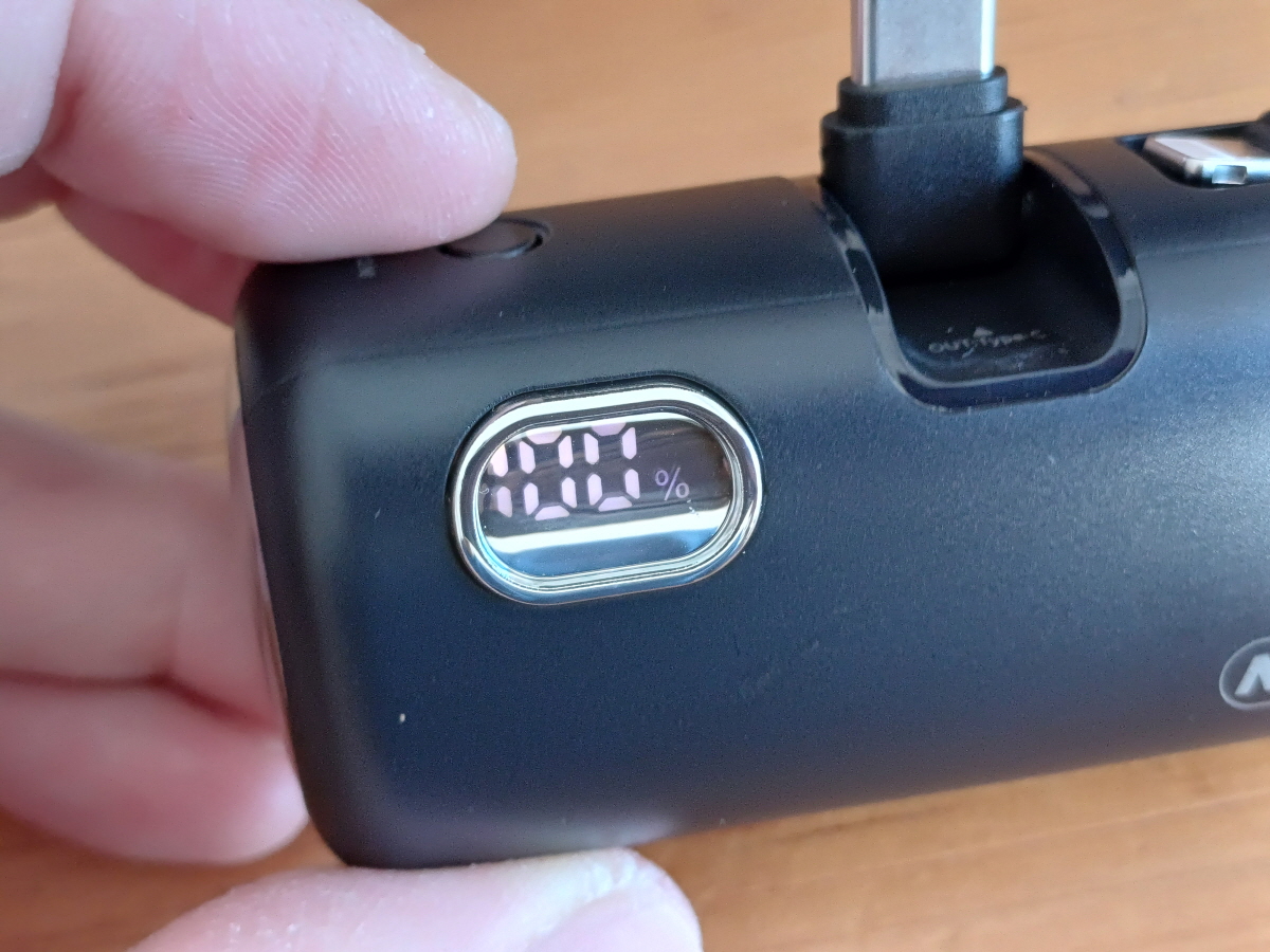 보조배터리 충전은 측면의 C타입 단자를 통해서 가능하고, 잔여 배터리 용량을 표시해 주는 작은 액정이 달려 있다.