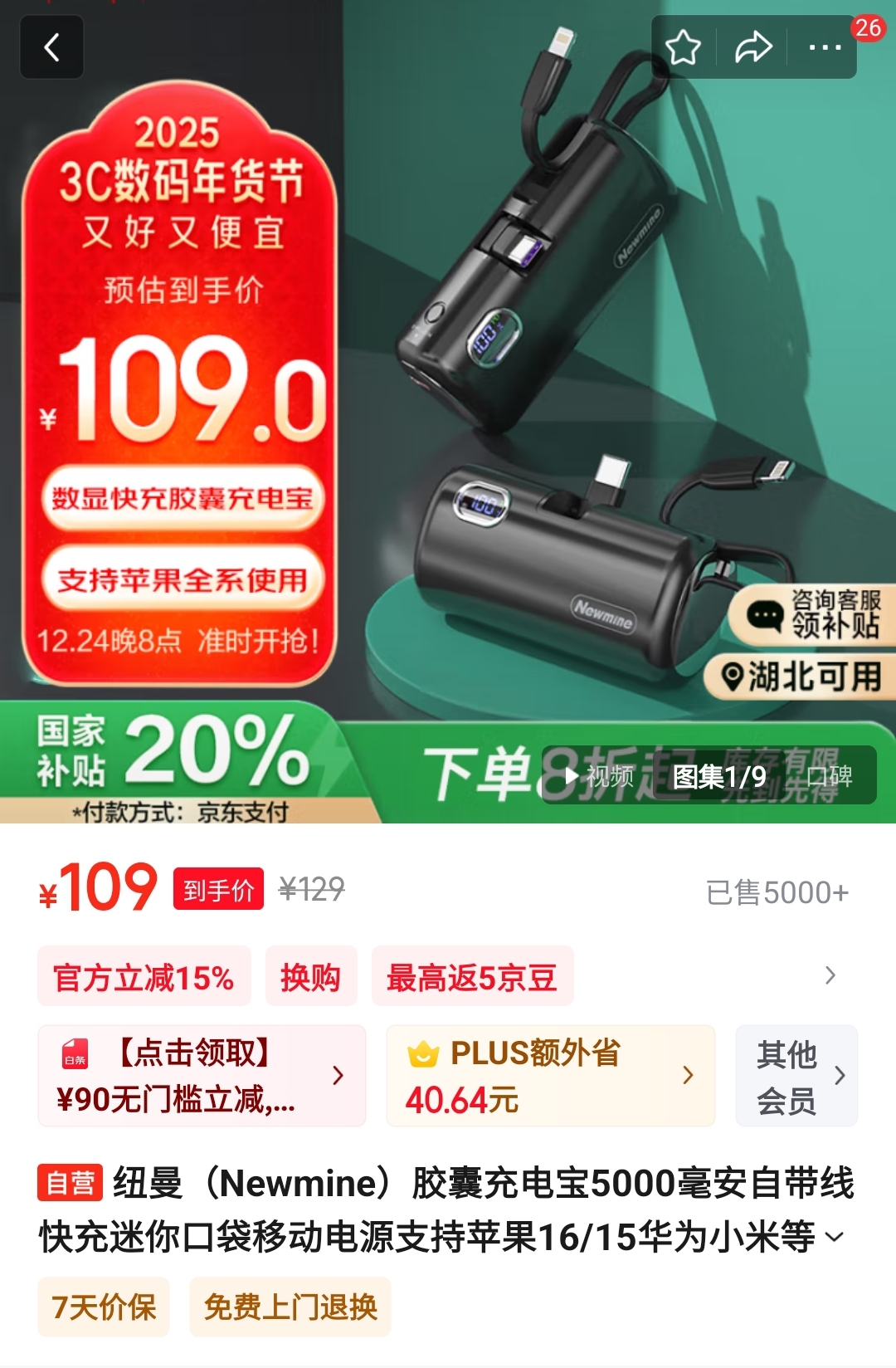 [쇼핑 중국어 공부] 뉴마인(纽曼/Newmine) 도킹형 보조배터리 5000mAh 징동 쇼핑몰 구매 및 사용 후기