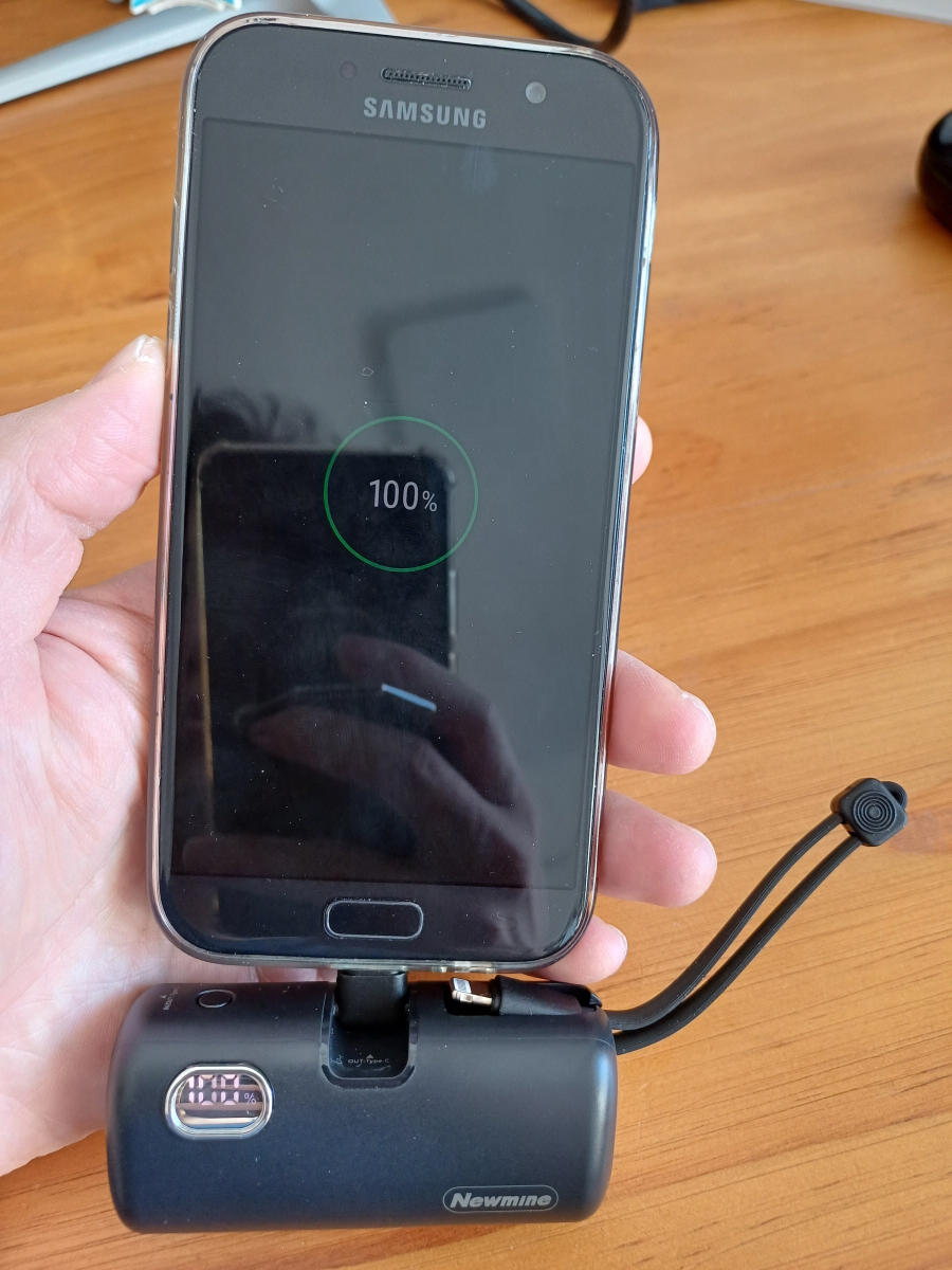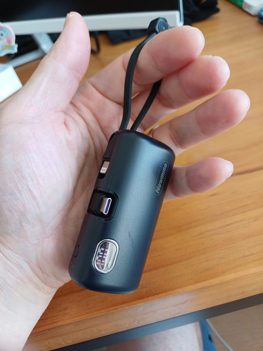 한참을 검색해서 구매하기로 결정한 제품은 뉴마인 이라는 브랜드의 도킹형 보조배터리다. 용량은 5000mAh로 내가 사용하는 갤럭시 A34의 배터리 용량과 동일해서 완충 한 번이 가능하다.