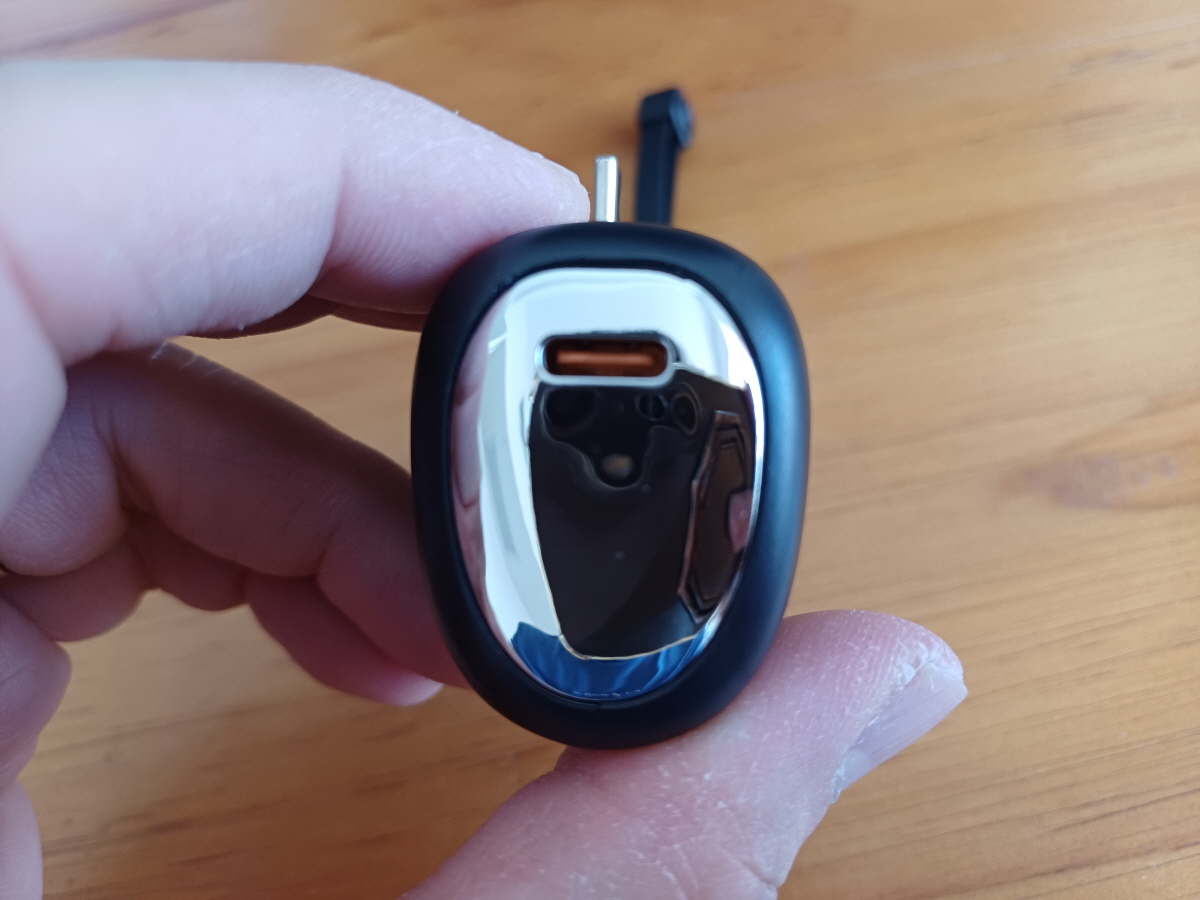 C타입 충전단자는 접이식으로 평소에는 접어 놓고 있다가 충전할 때 펴는 방식이며, 아이폰 충전단자는 평소에는 고리로 사용을 하다가 필요할 때 빼서 사용하면 된다.