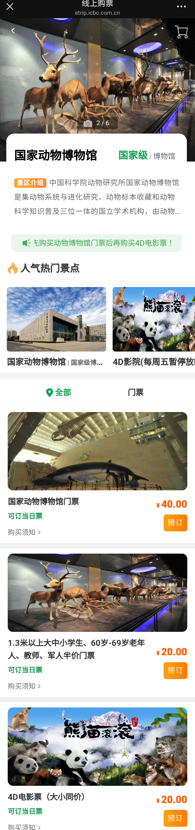 입장권은 40위안이며 신장 1.3m 이하의 어린이는 무료로 입장이 가능하다. 위챗 공중계정에서 결제를 하면 입장 시 사용가능한 QR코드를 발급해 준다.
