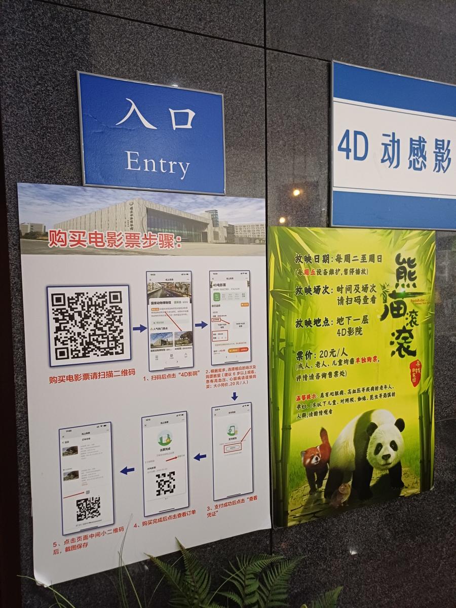 지하 1층에는 판다가 나오는 4D영화관도 있는데 아이가 아직 어려서 무리가 있을 것 같아 관람은 포기했다. 가격은 어른 아이 상관없이 20위안이다.