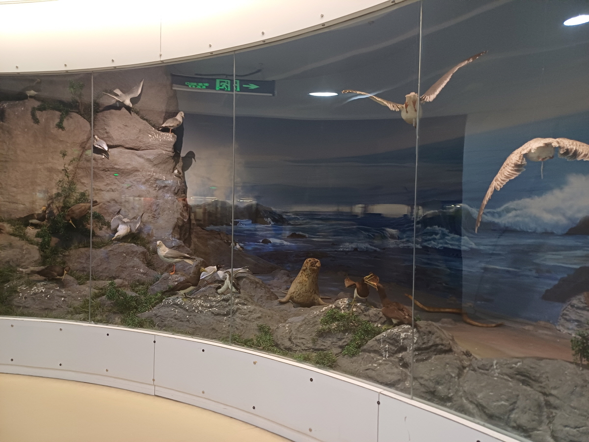 지하 1층으로 내려오니 고래, 상어, 각종 포유류 등 익숙한 동물들의 표본이 전시되어 있었다.