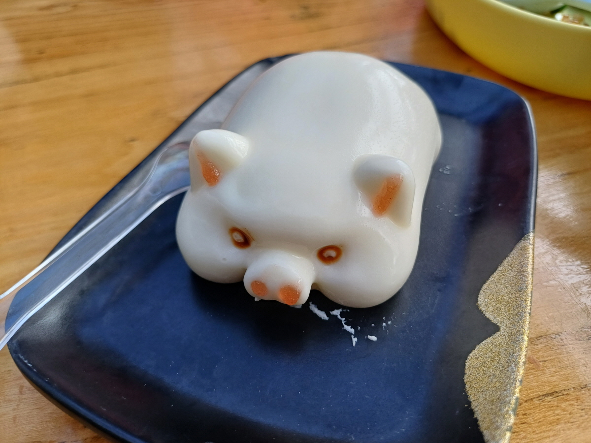 아이에게 줄 디저트로 돼지모양의 푸딩도 주문을 했는데 아이가 신나게 먹었다. 맛은 은은한 우유맛이 났다.