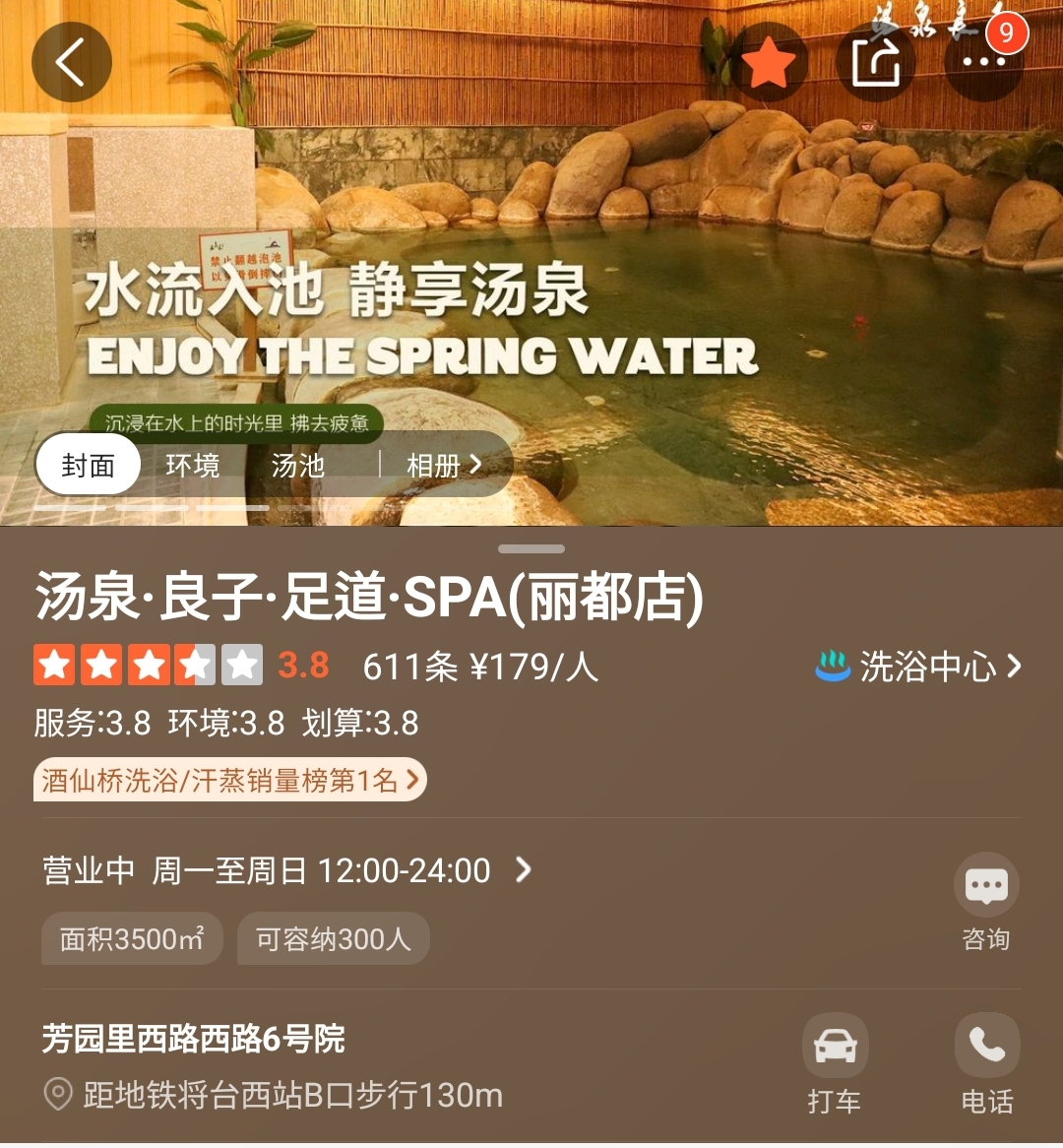 택시를 타고 이동하는 중에 따종디엔핑(大众点评) 평가 어플로 검색을 해보니 평점이 3.8점으로 매우 낮았다. 일단 도착 후 상태를 살펴본 후 입장 여부를 결정하기로 했다.