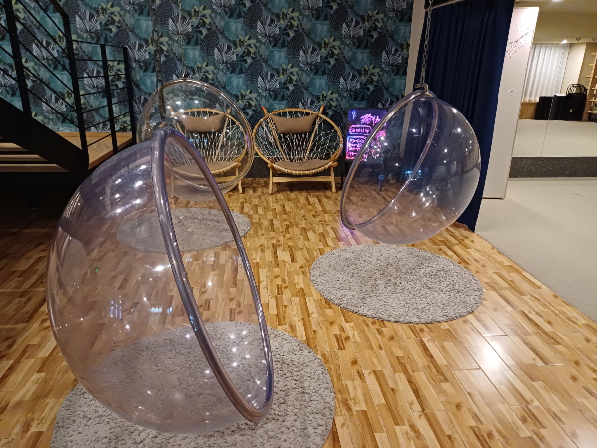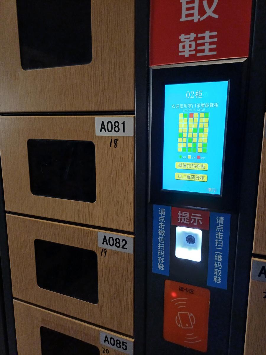 엘리베이터를 타고 이동한 뒤 위챗 QR코드를 스캔해서 등록하는 방식으로 신발장 문을 열면 팔지를 받을 수 있었고, 팔지를 이용해서 내부 시설 이용 후 퇴장 시 사후 정산을 하는 시스템이었다.