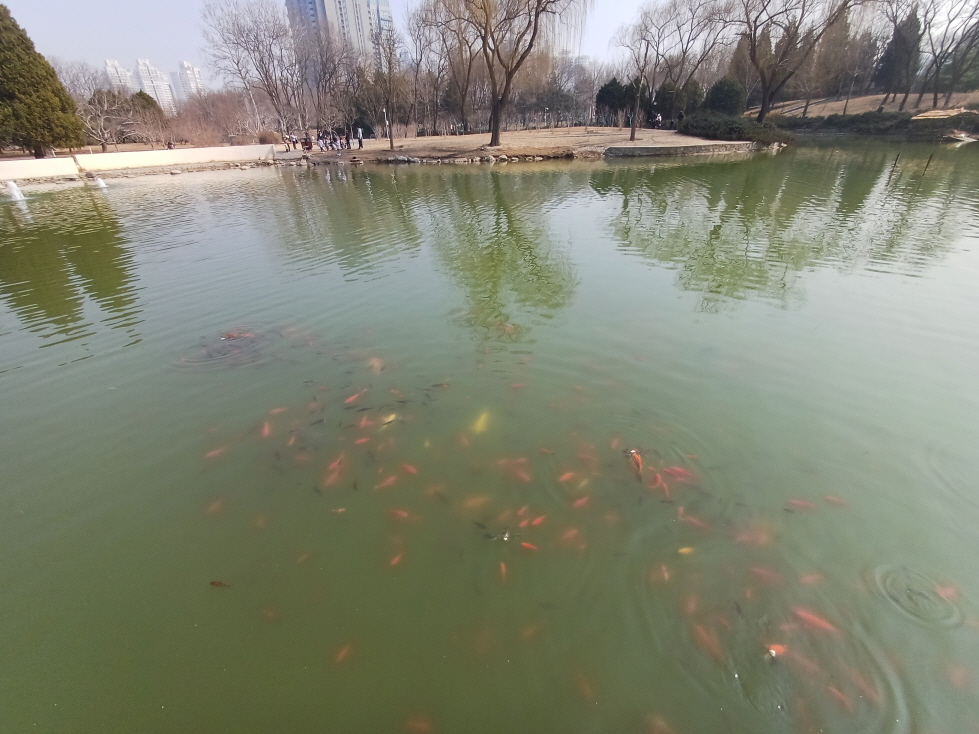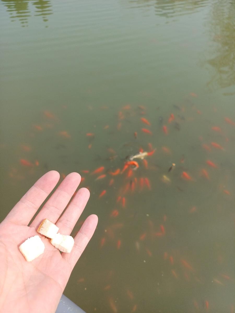 공원 가운데에는 큰 호수가 있는데, 거위와 오리가 살고 있었다. 미리 준비해 간 식빵을 호수에 던지니 엄청난 수의 물고기들이 몰려와서 순식간에 먹어버렸다. 물고기와 오리를 보고 아이가 정말 즐거워했다.