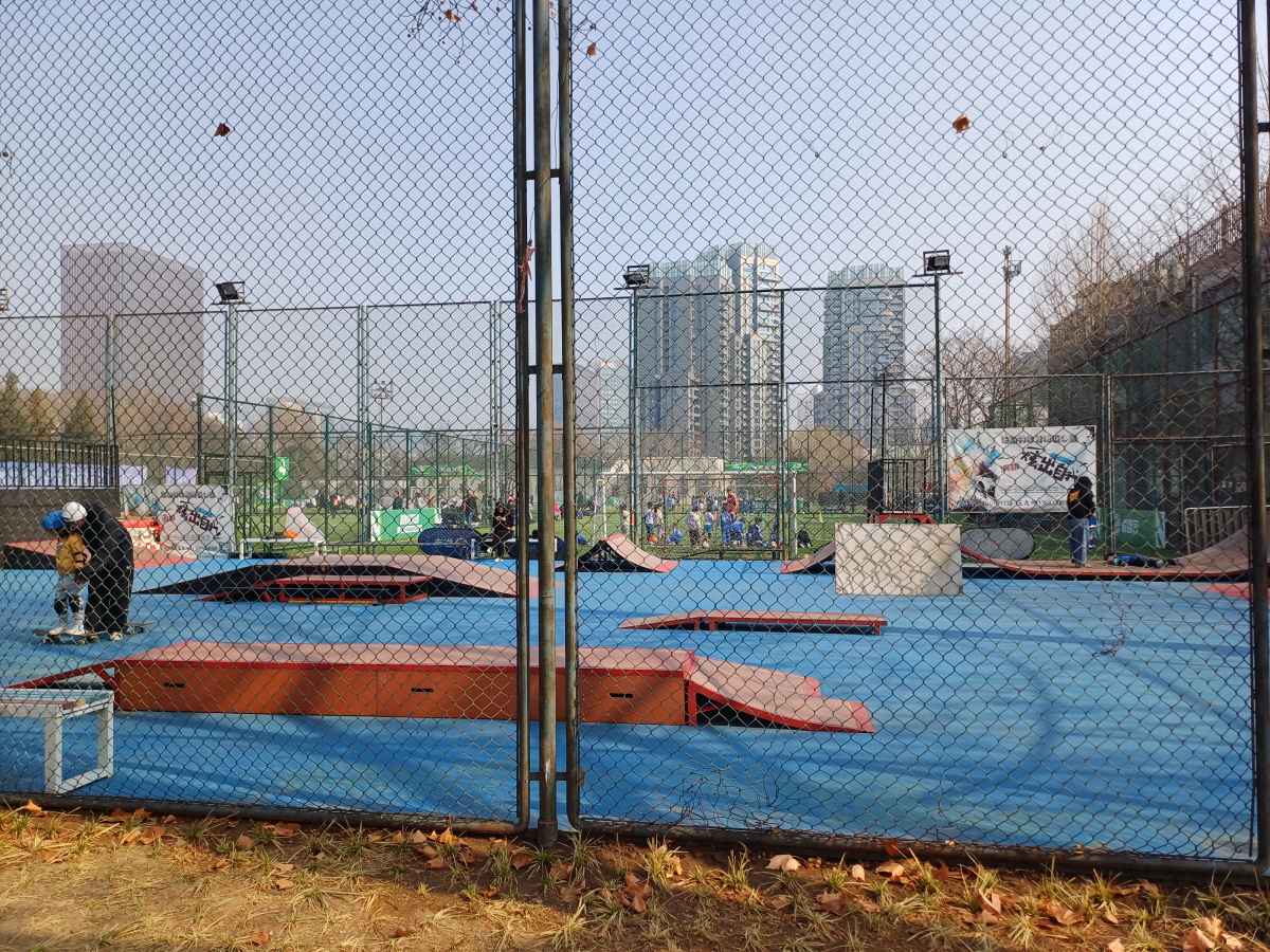 동문 부근에는 여러 체육 코트가 있는데, 스케이트보드, 풋살, 테니스 코트에서 오전부터 다들 열심히 운동을 하고 있었다.