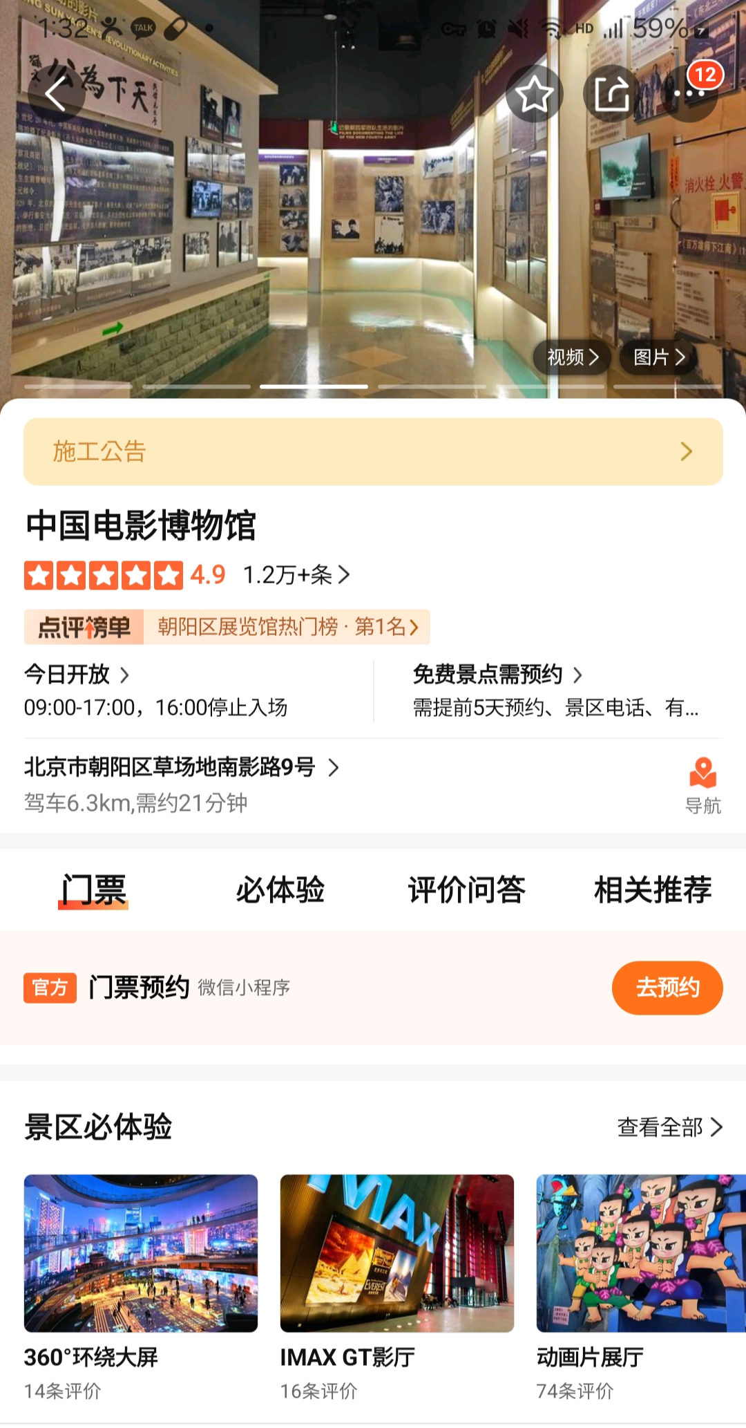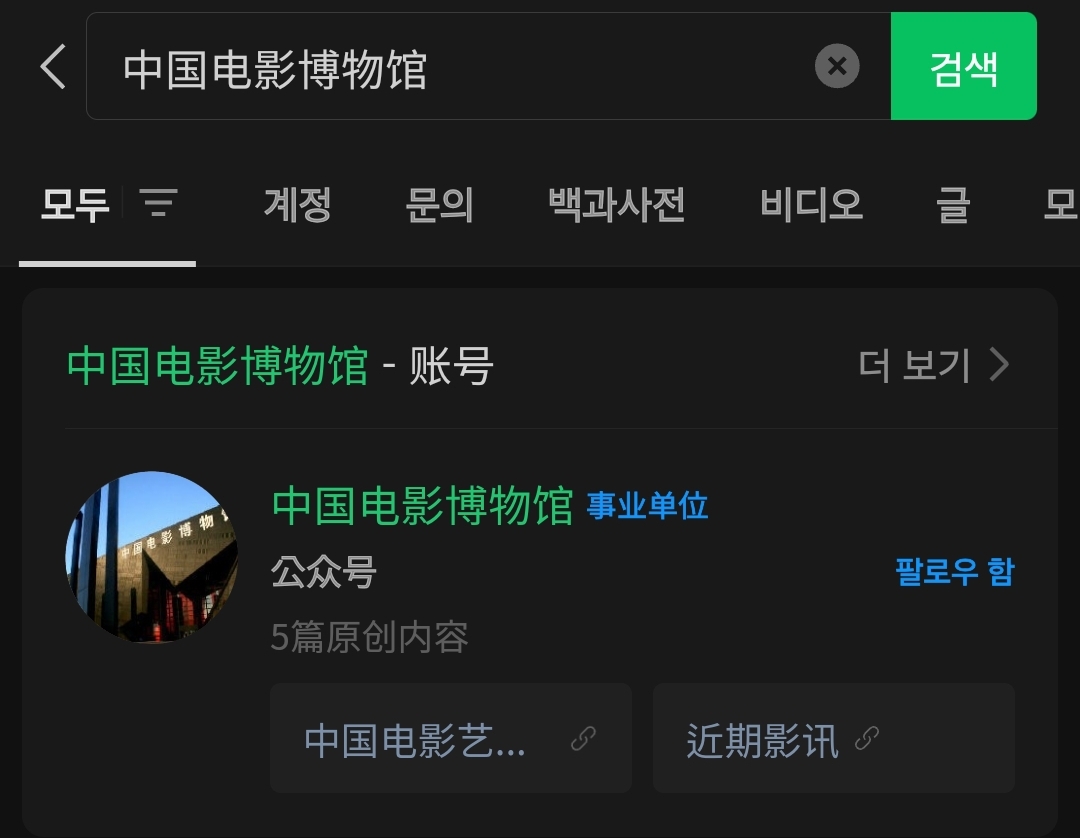 중국영화박물관은 온라인으로 입장 예약을 해야 하며, 무료로 입장이 가능하다. 중국 위챗에 중국영화박물관(中国电影博物馆)이라고 검색을 하면 온라인 예매가 가능한 공중계정으로 이동 가능하다.