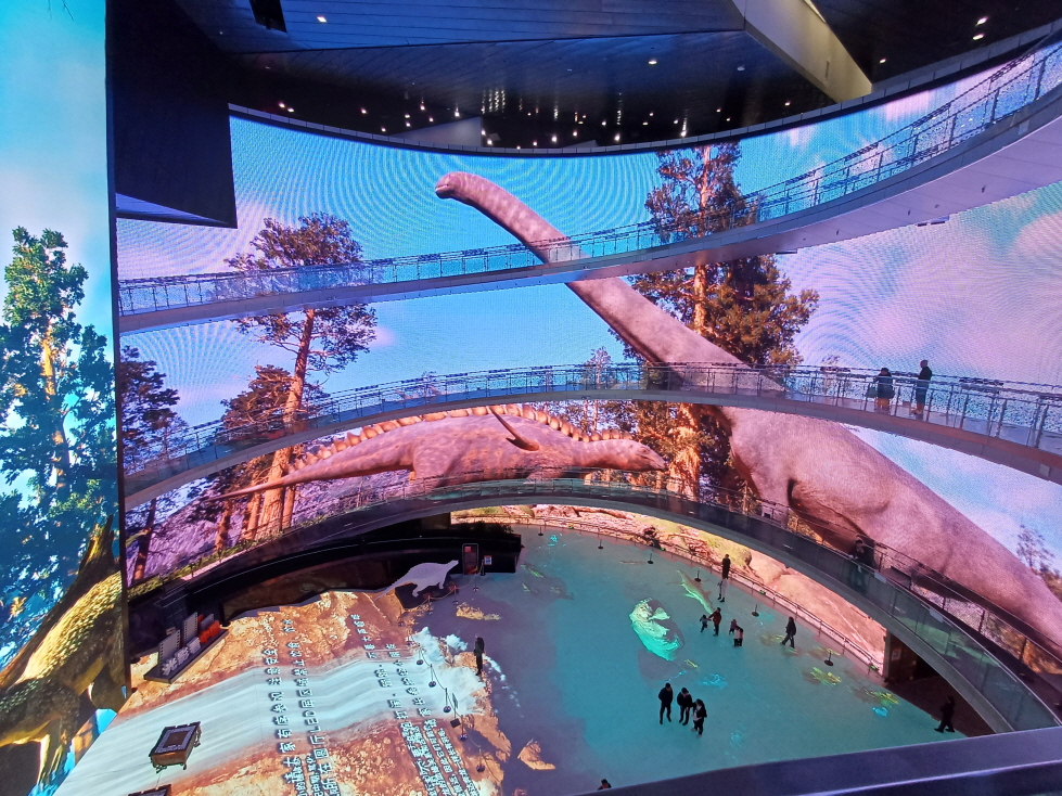 전시실로 가기 위해서는 메인 로비를 지나치게 되는데, 엄청난 크기의 360도 스크린에 압도당했다.