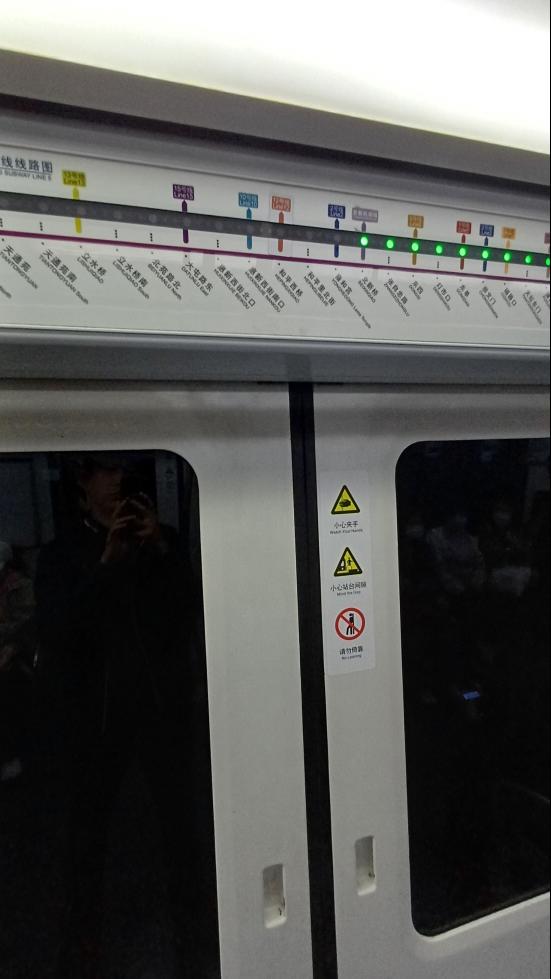 베이징 지하철 15호선 내부는 매우 깔끔했으며, 지하철 문 위에 화면으로 이동 경로가 표시되어서 이용 시 매우 편리했다.