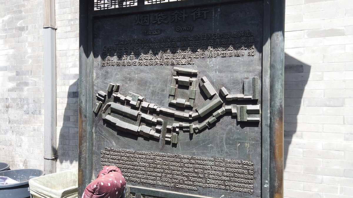 특히 동북 방향으로 비스듬하게 길이 나있는 작은 골목에 담뱃대 상점이 많았으며, 길의 모습이 마치 담뱃대 모양으로 생겼다고 하여 연대사가(烟袋斜街)라고 불리게 되었다고 한다.