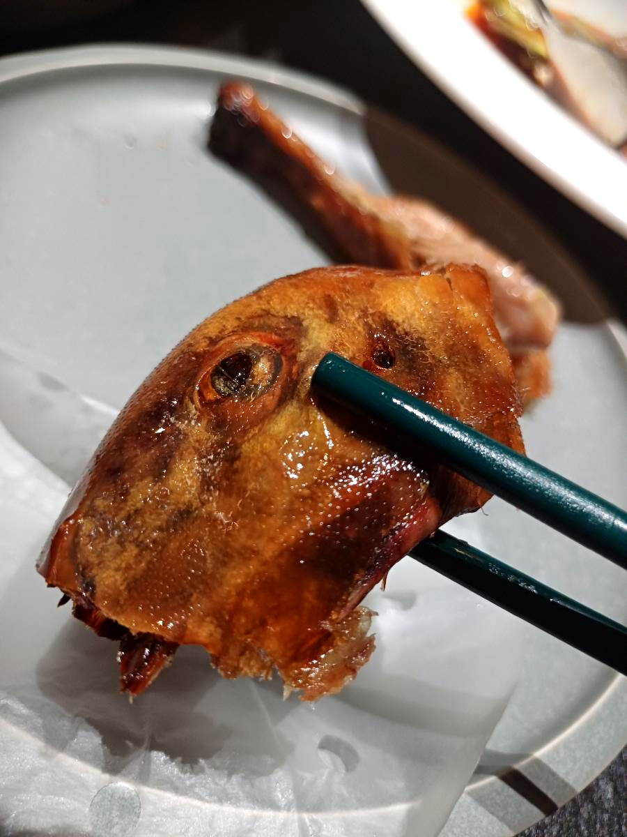 다른 접시 하나에는 오리 머리 반쪽과 오리 다리 하나를 주는데, 언제 봐도 오리 머리의 비주얼은 살벌하다.